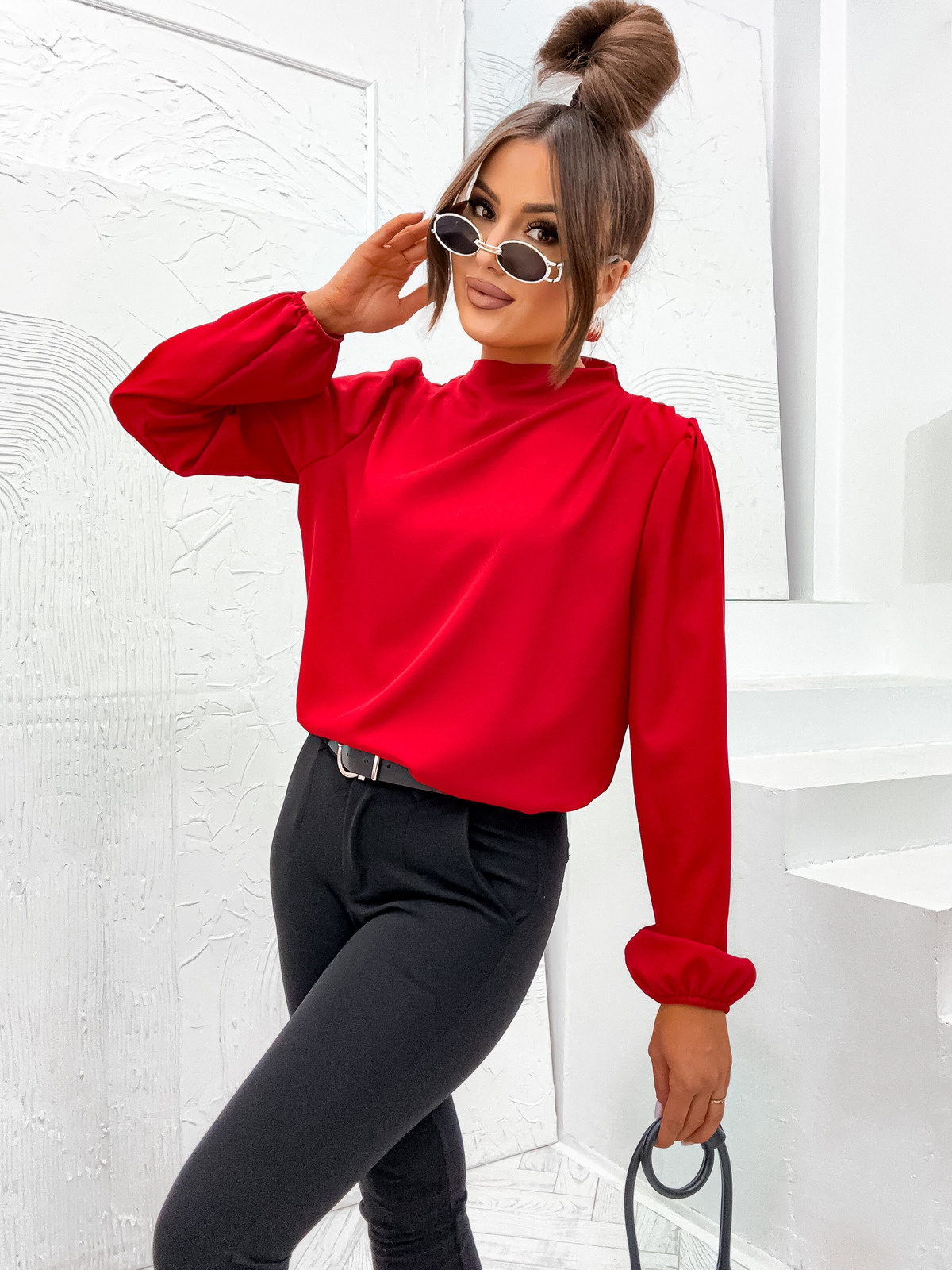 ELEGANCKA BLUZKA Z BUFIASTYMI RĘKAWAMI- CZERWONA