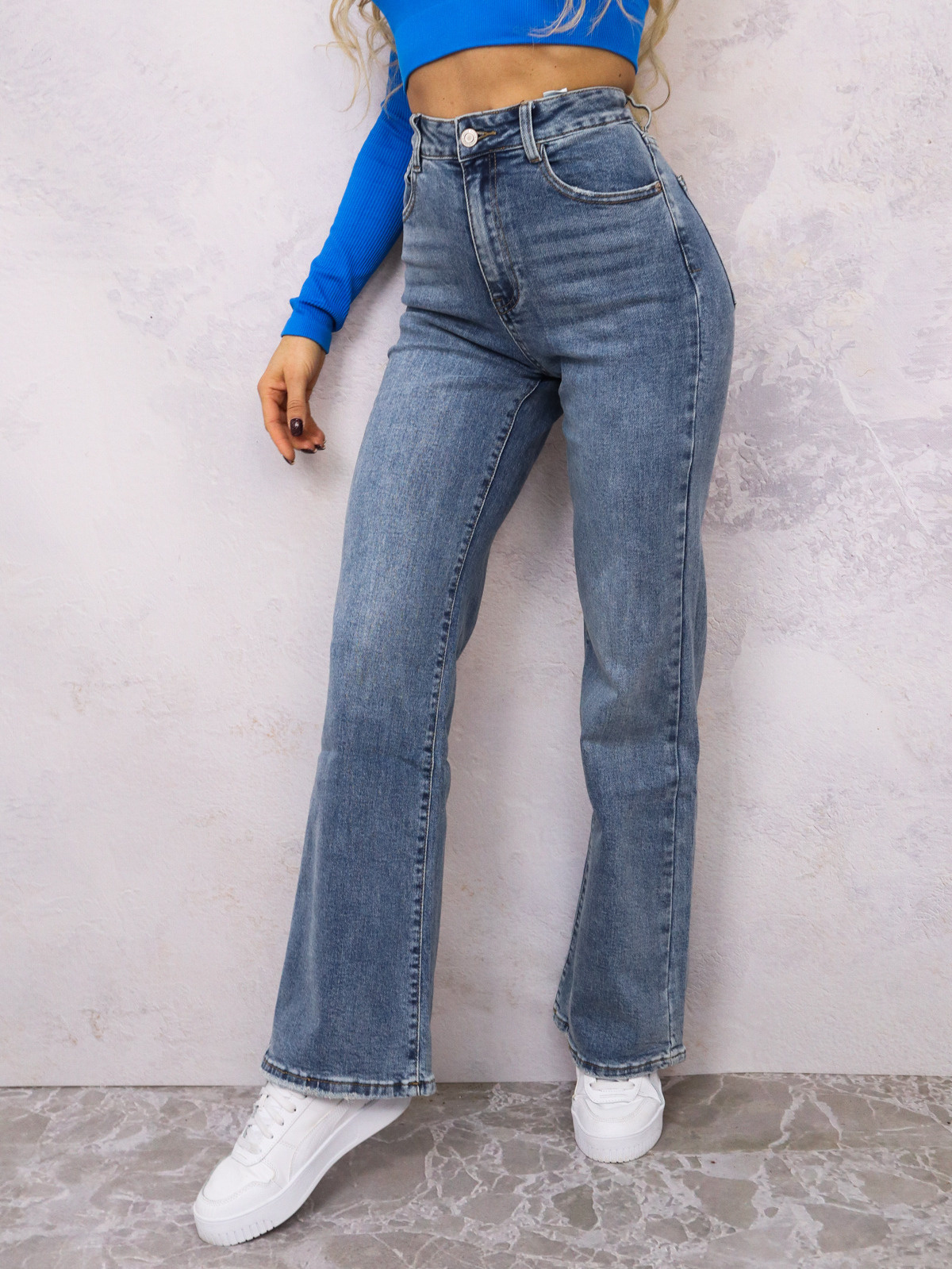 Spodnie jeansowe z szerokimi nogawkami. Kieszenie z przodu i z tyłu. Elastyczny, komfortowy jeans.