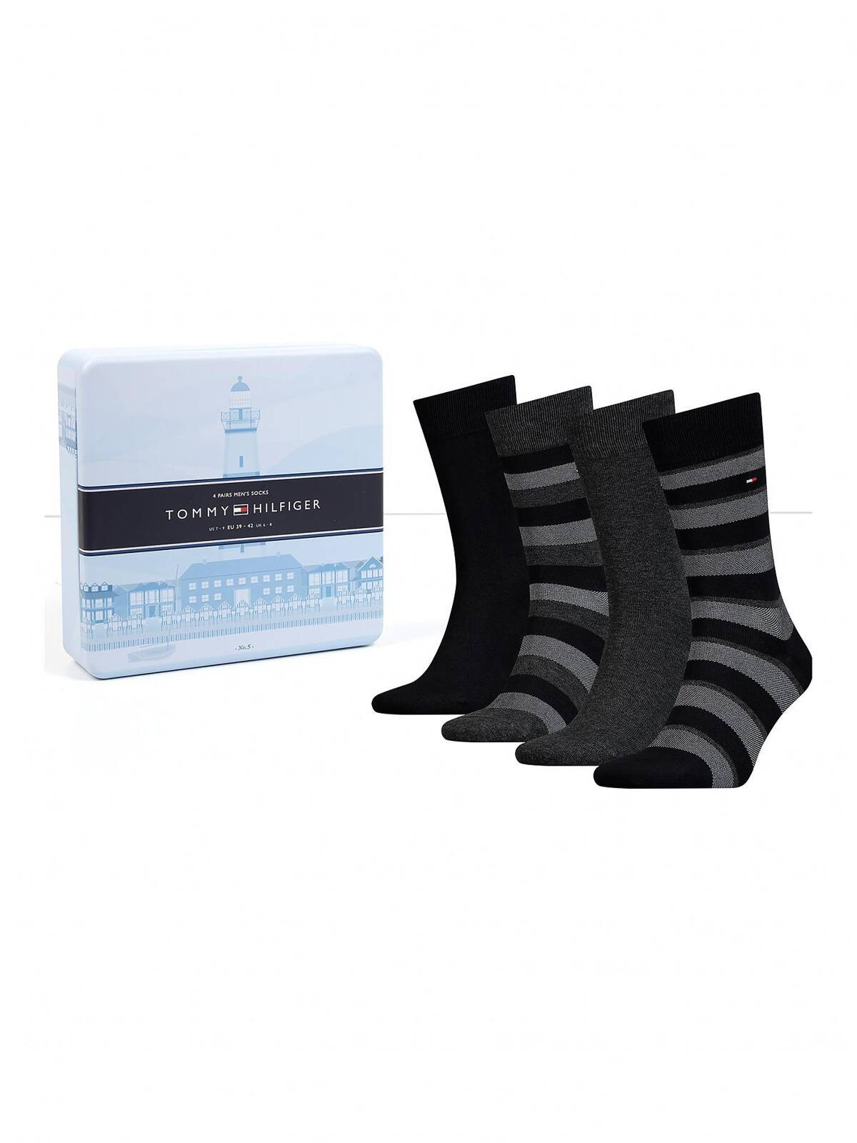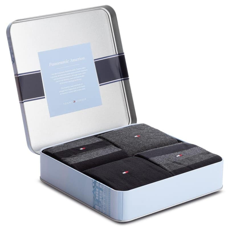 Zestaw czterech par wysokogatunkowych skarpetek marki Tommy Hilfiger zapakowanych w gustowne pudełko to znakomity pomysł na prezent. Skarpetki wykonane z najwyższej jakości materiału - wytrzymałego i przyjemnego w dotyku, zestaw w modnej kolorystyce.
