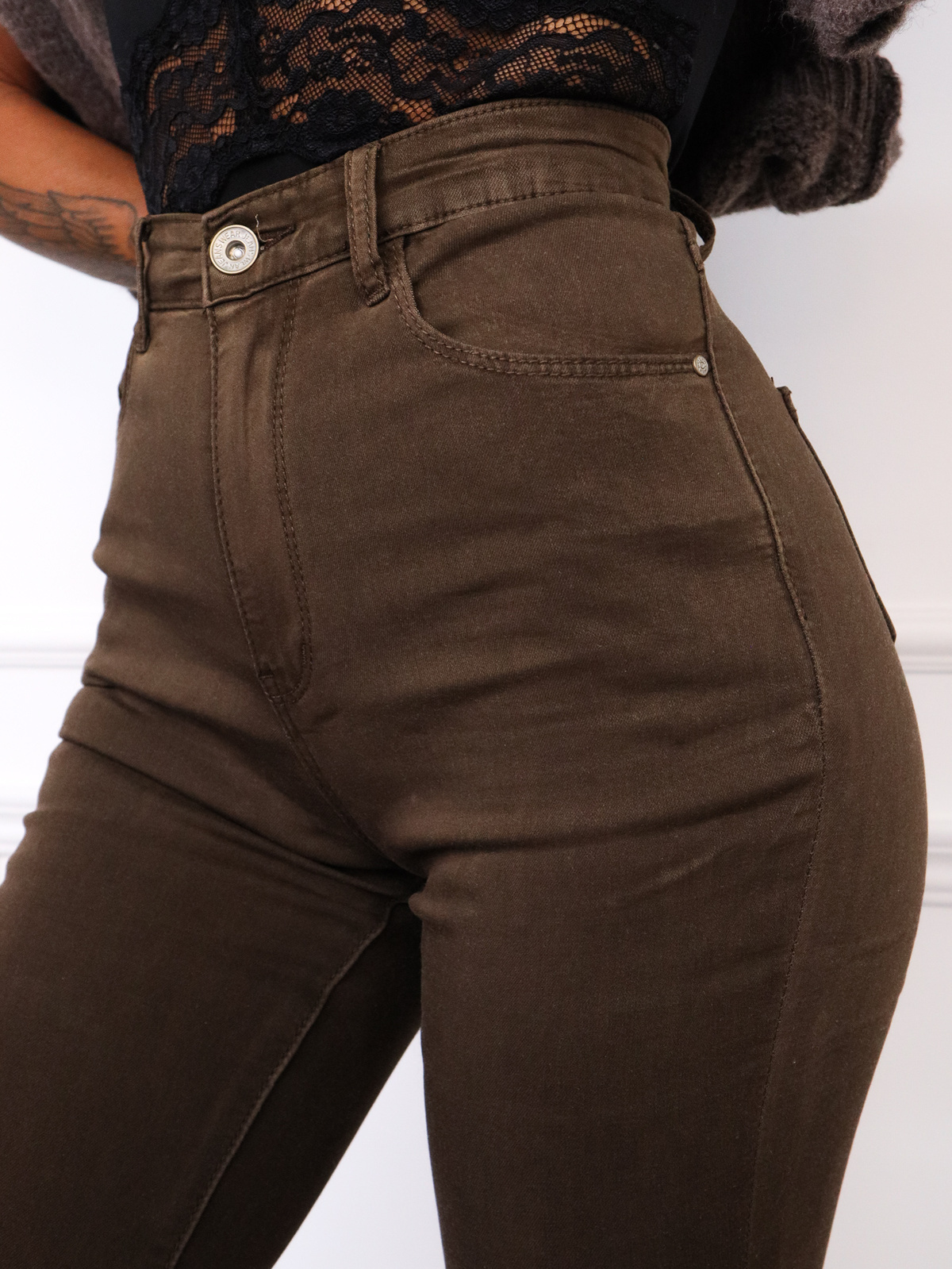 Spodnie wykonane z elastycznego materiału. Bardzo wysoki stan, rozporek na suwak i guzik. Obcisłe nogawki. Spodnie z funkcją stretchu, który trzyma i modeluje talię, uda i pośladki oraz zachowuje kształt spodni.