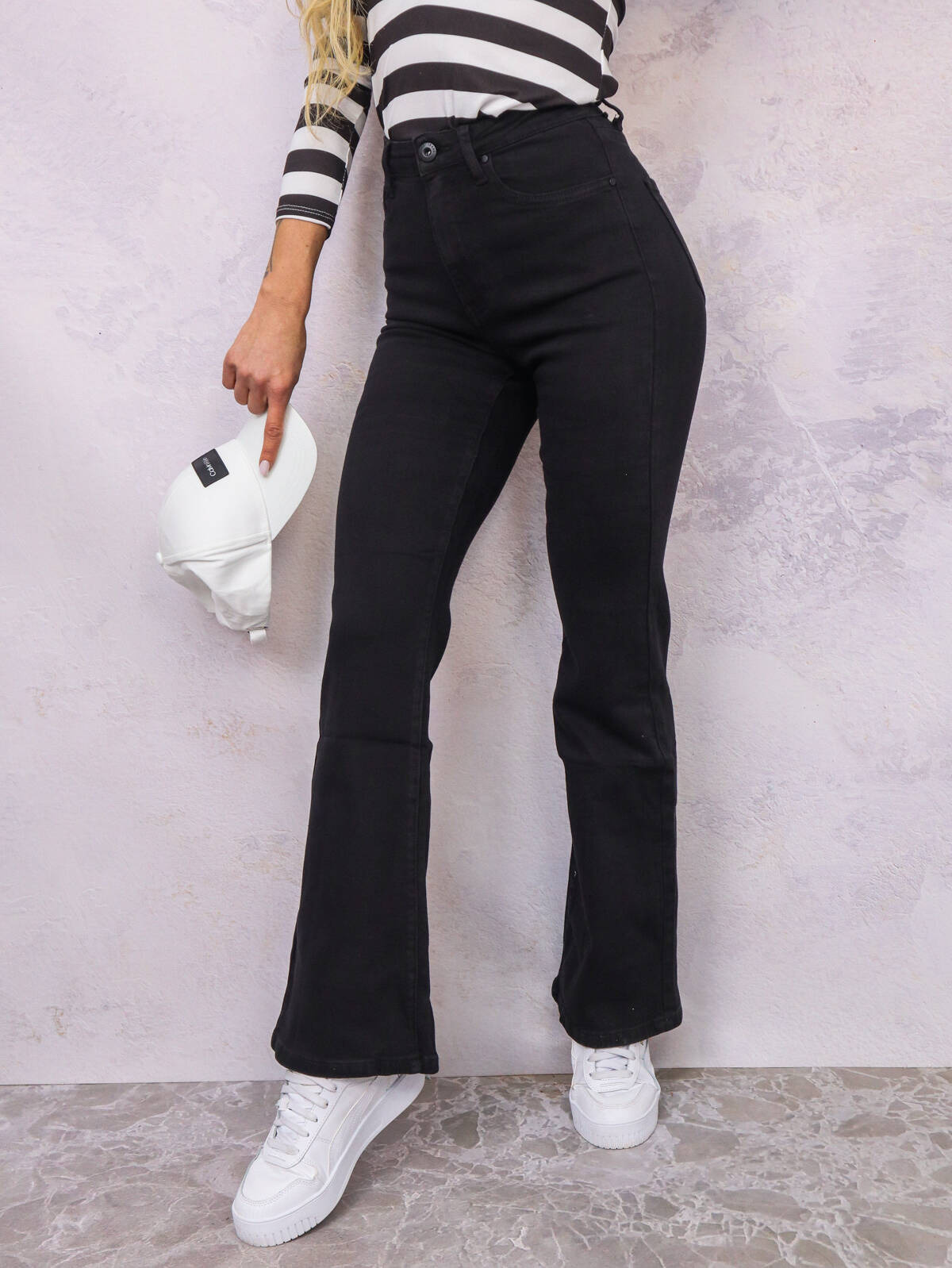 SPODNIE JEANSOWE FLARE DZWONY- CZARNE