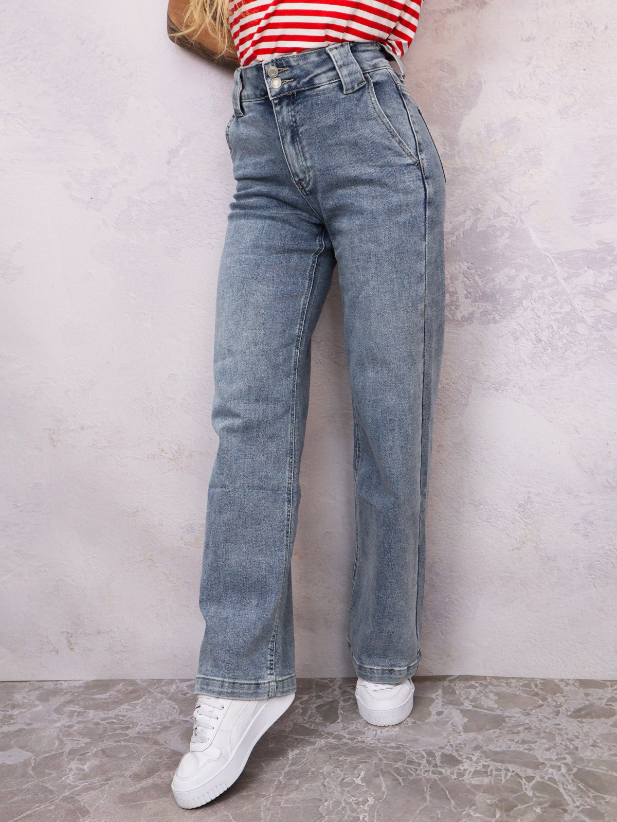 SPODNIE JEANSOWE Z SZEROKIM PASEM- WYSOKI STAN