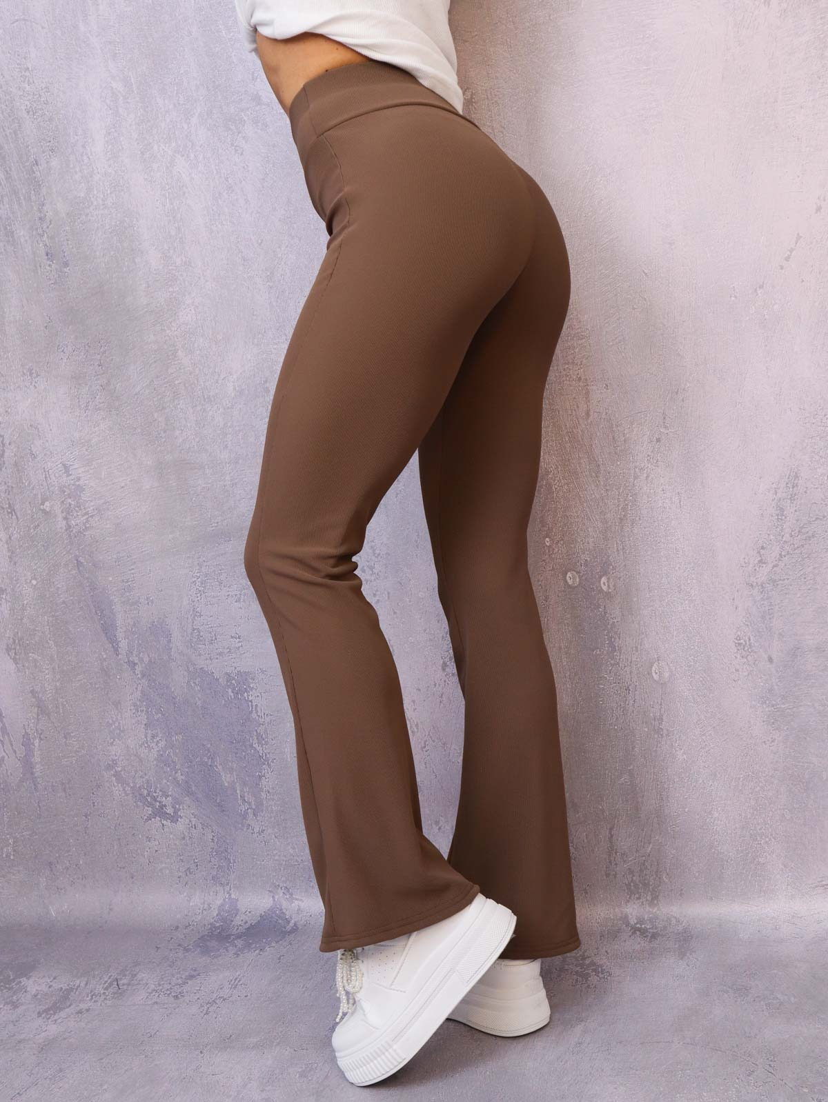 LEGGINSY PRĄŻKOWANE DZWONY- BRĄZOWE
