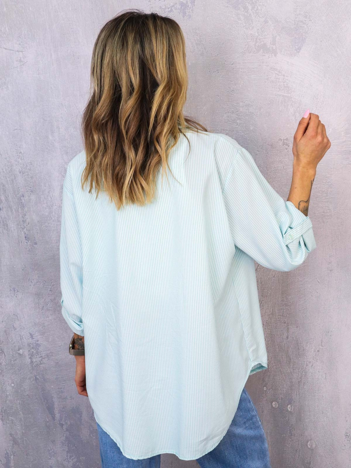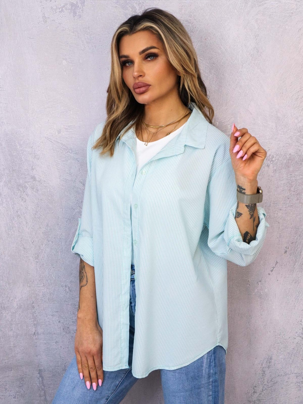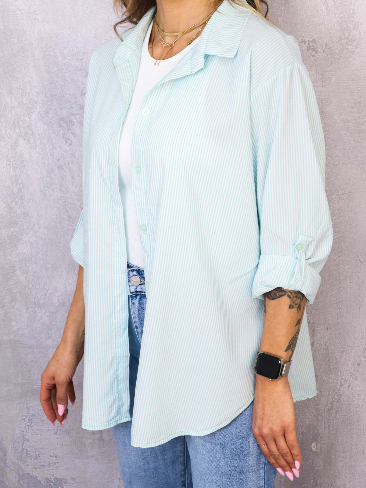 KOSZULA OVERSIZE W PASKI- TURKUSOWA