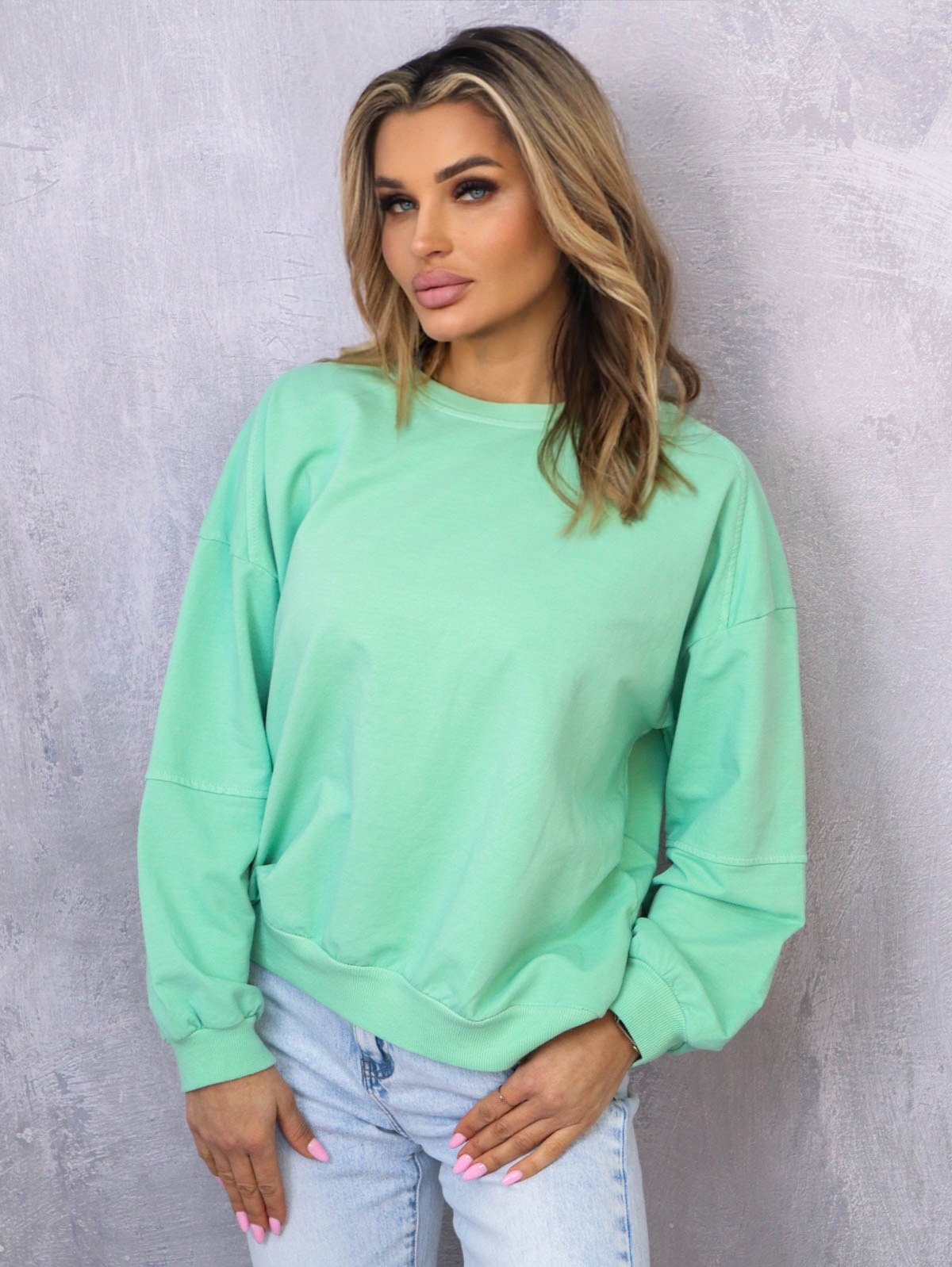 ASYMETRYCZNA BLUZA OVERSIZE Z PRZESZYCIAMI NA RĘKAWACH- ZIELONA