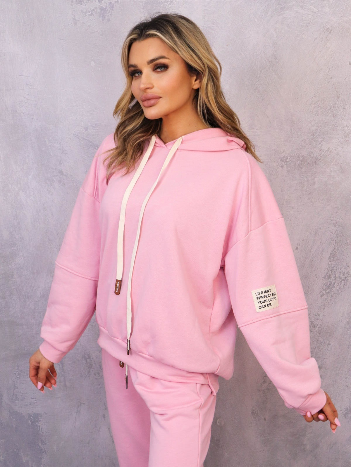 KOMPLET DRESOWY BLUZA Z KAPTUREM+ SPODNIE- RÓŻOWY