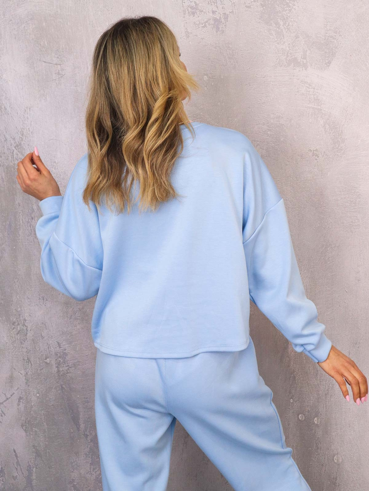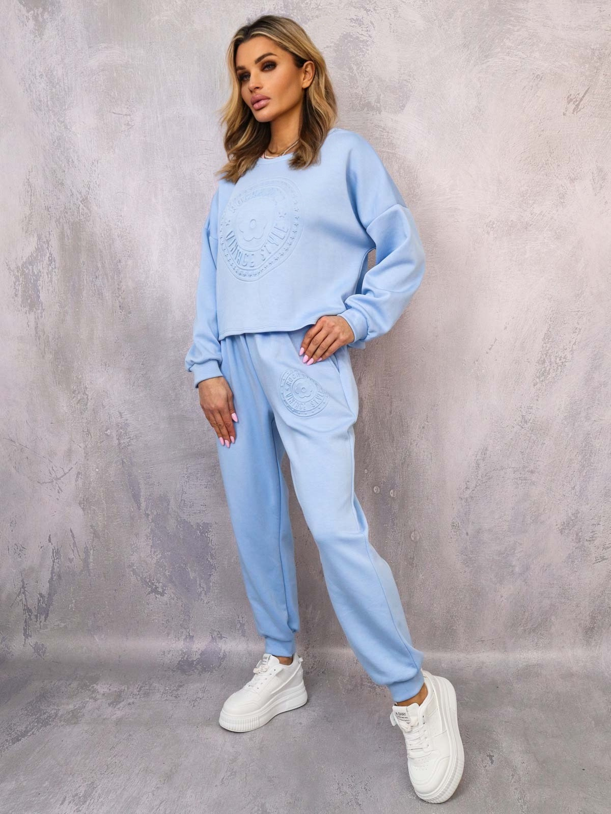 KOMPLET DRESOWY BLUZA Z WYTŁOCZONYM NADRUKIEM+ SPODNIE- NIEBIESKI