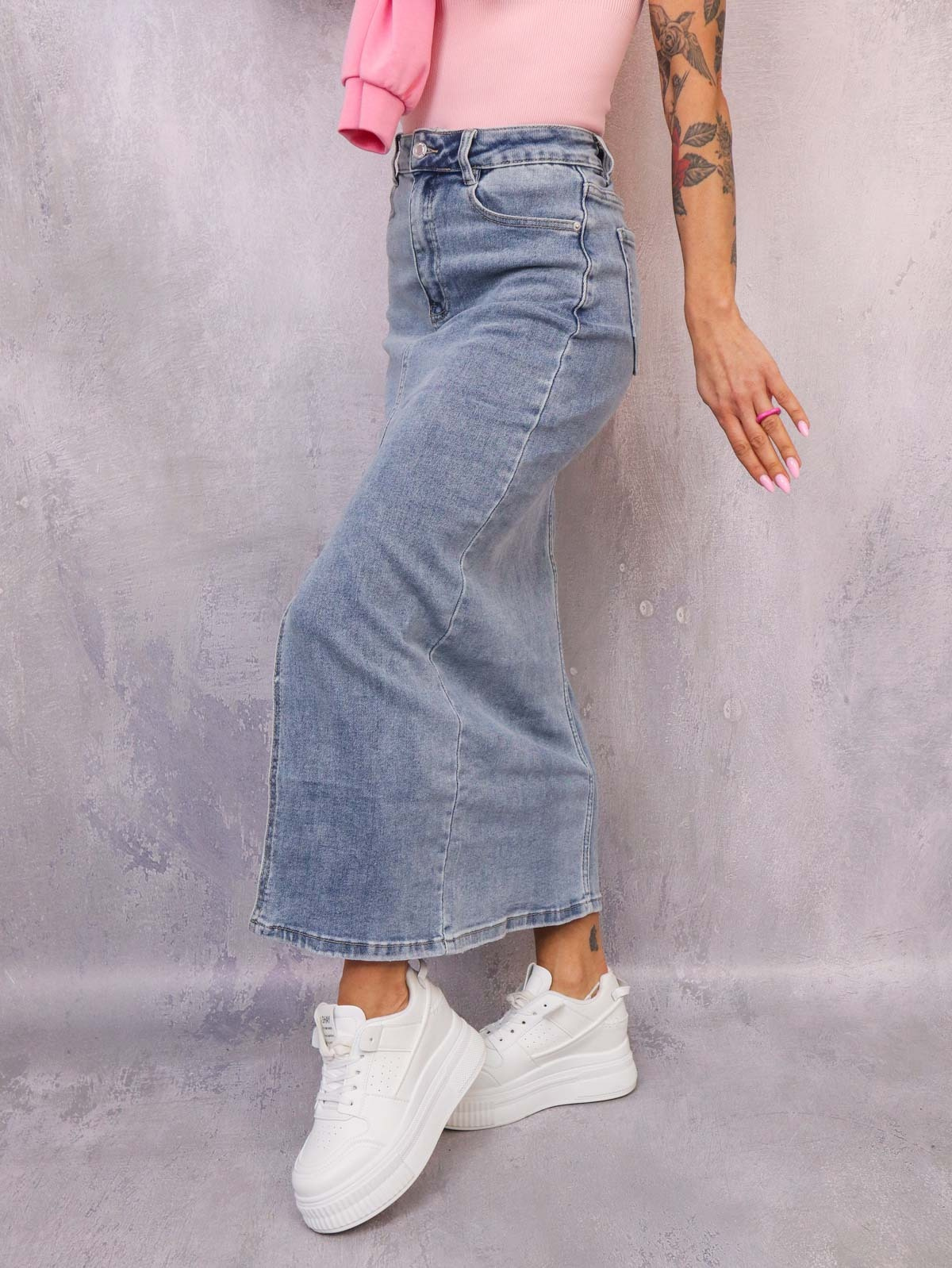 SPÓDNICA JENASOWA MAXI Z ROZPORKIEM