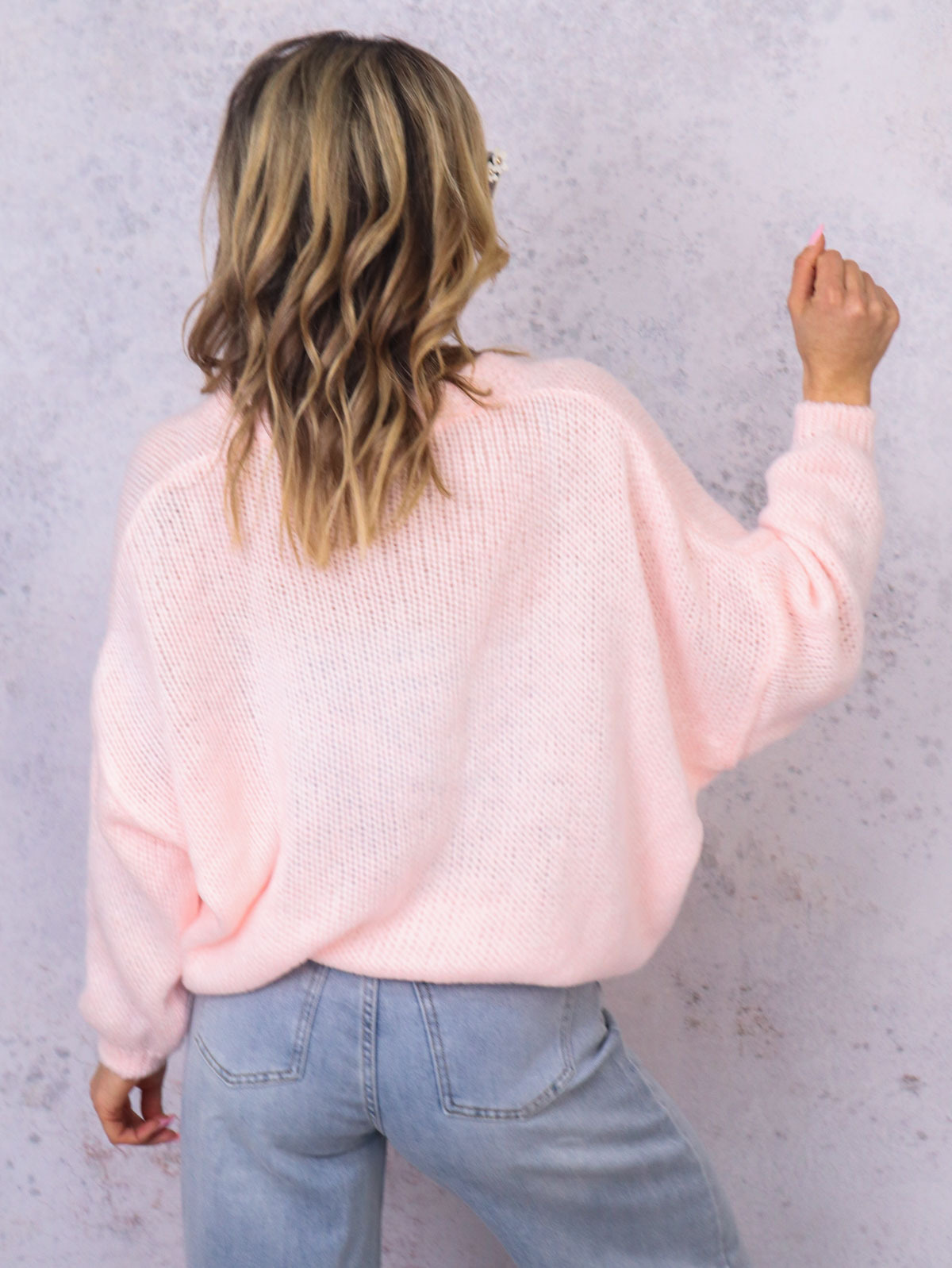 LUŹNY SWETER ZE ZŁOTYMI GUZIKAMI- MORELOWY