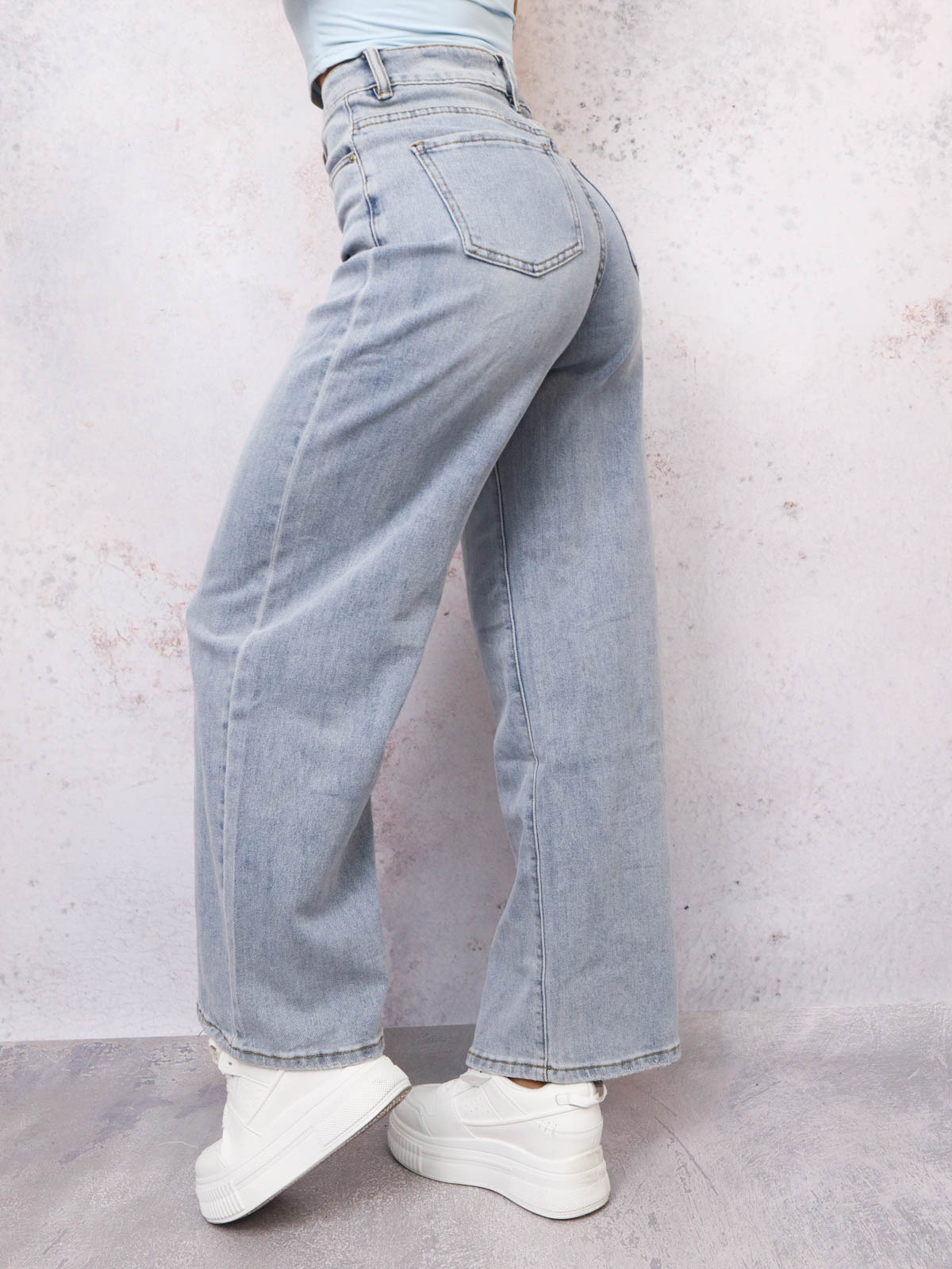 SPODNIE JEANSOWE Z SZEROKĄ NOGAWKĄ I WYSOKIM STANEM- NIEBIESKIE