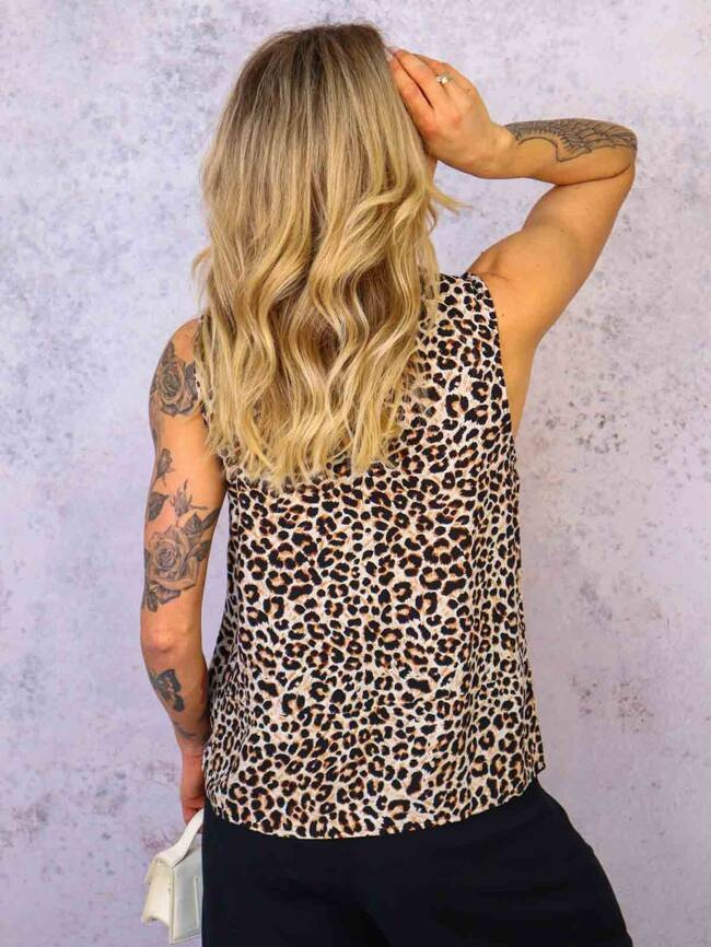 Top na ramiączkach w panterkowy wzór. Ozdobne przeszycie na dole.