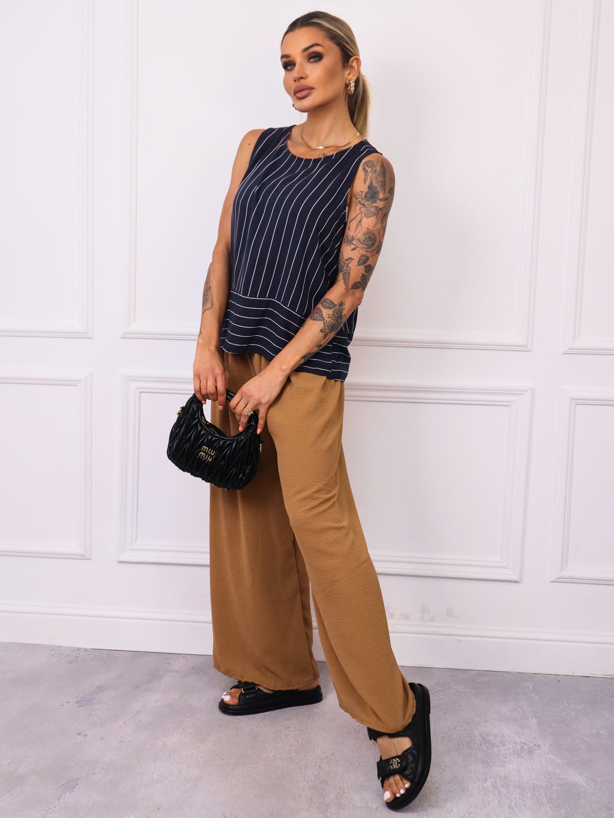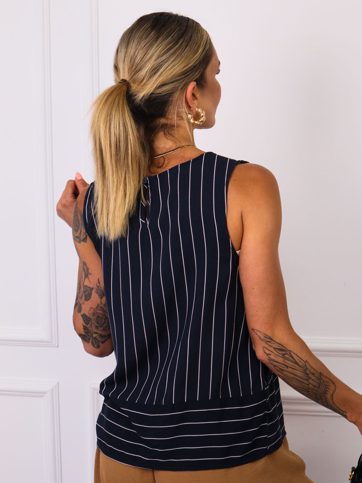 TOP NA RAMIĄCZKACH W PASKI- GRANATOWY