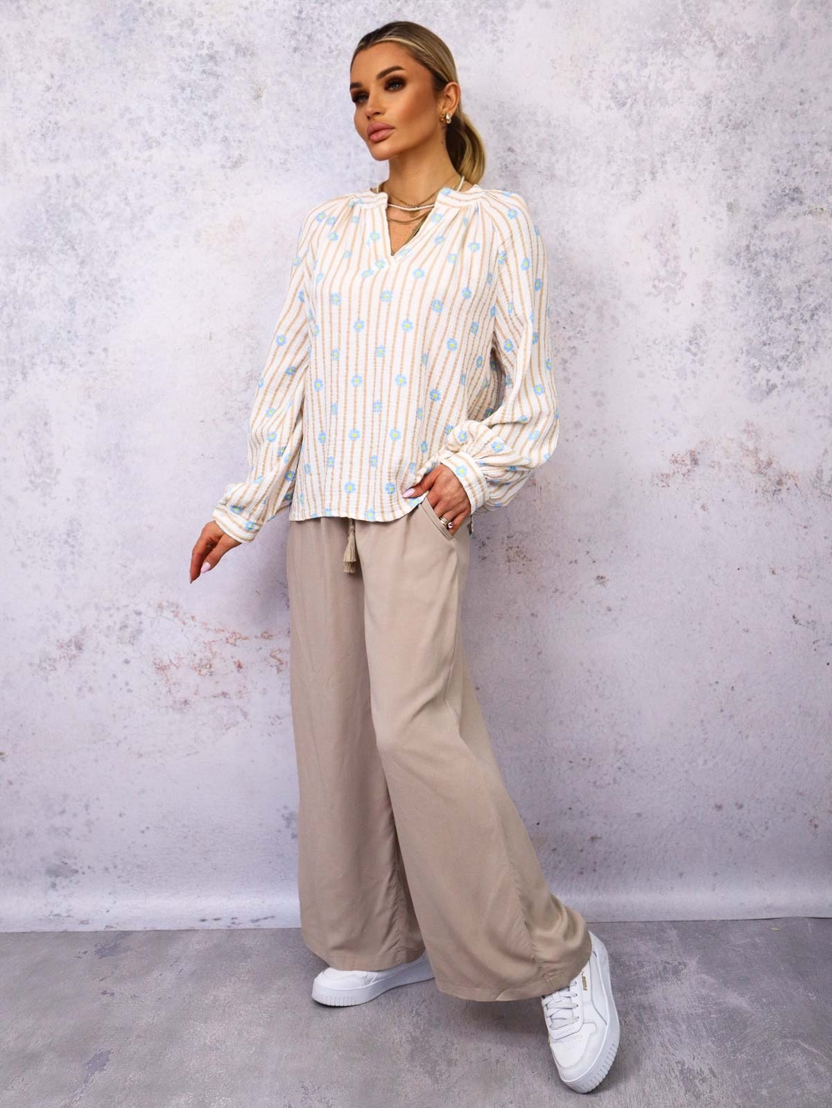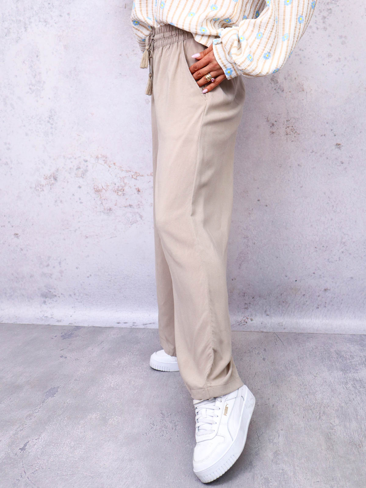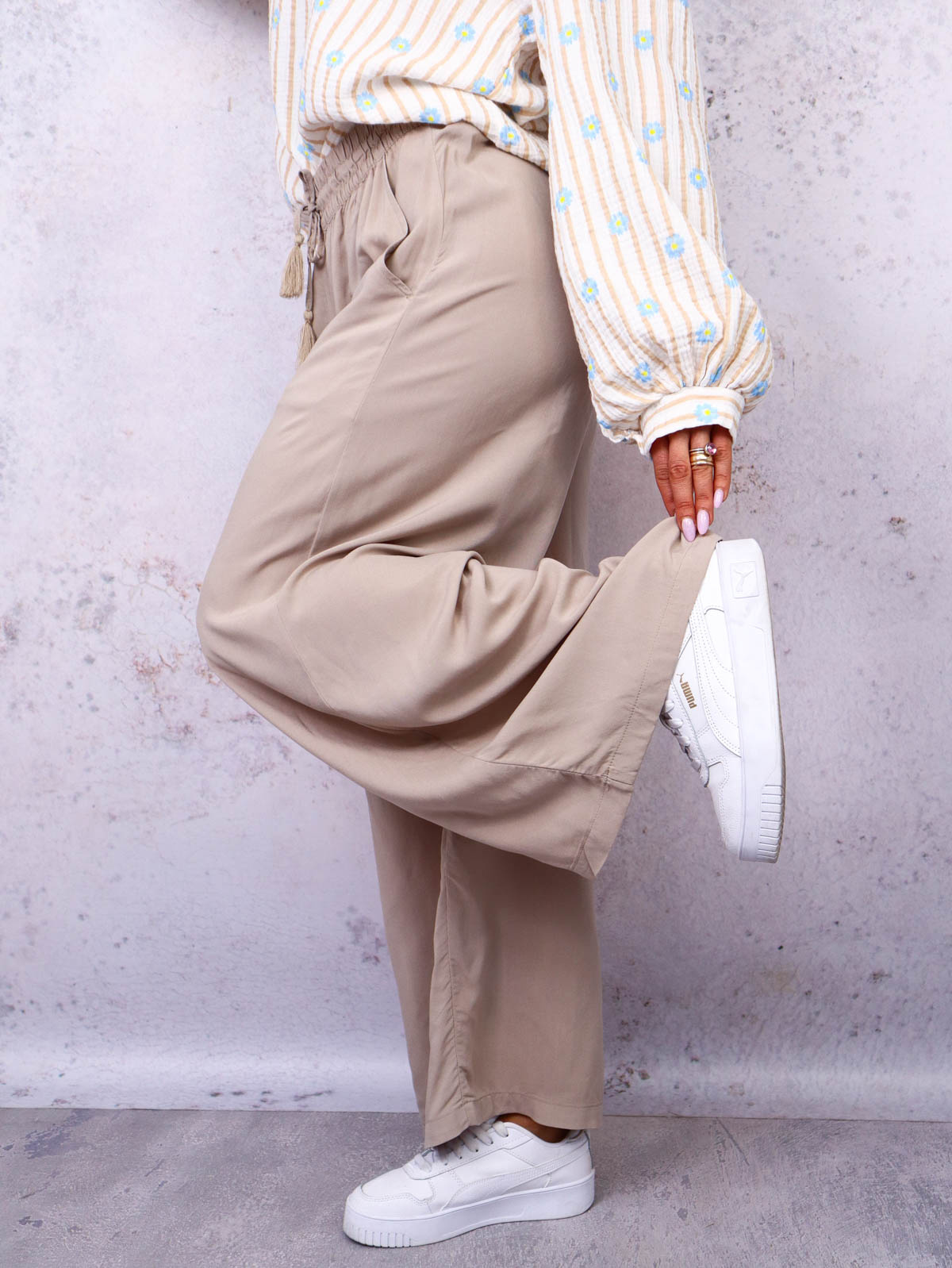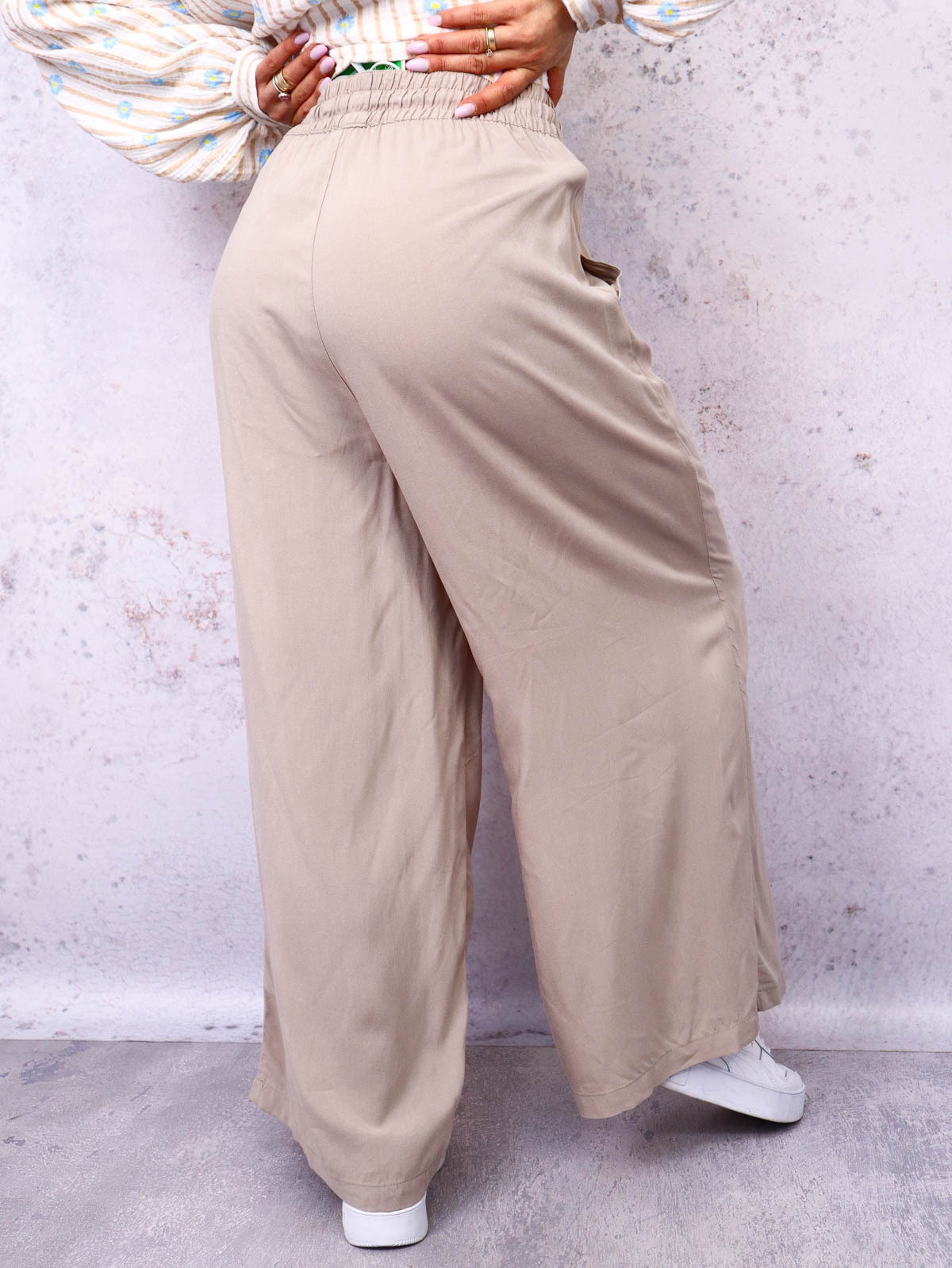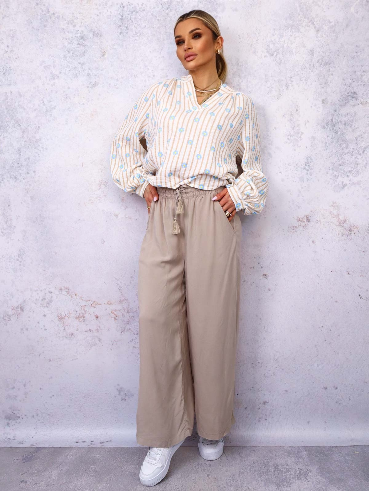 SPODNIE MATERIAŁOWE Z SZEROKIMI NOGAWKAMI- BEŻOWE