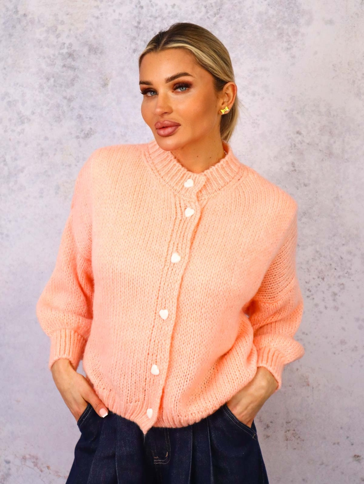 SWETER ZAPINANY NA GUZIKI W SERDUSZKA- BRZOSKWINIOWY