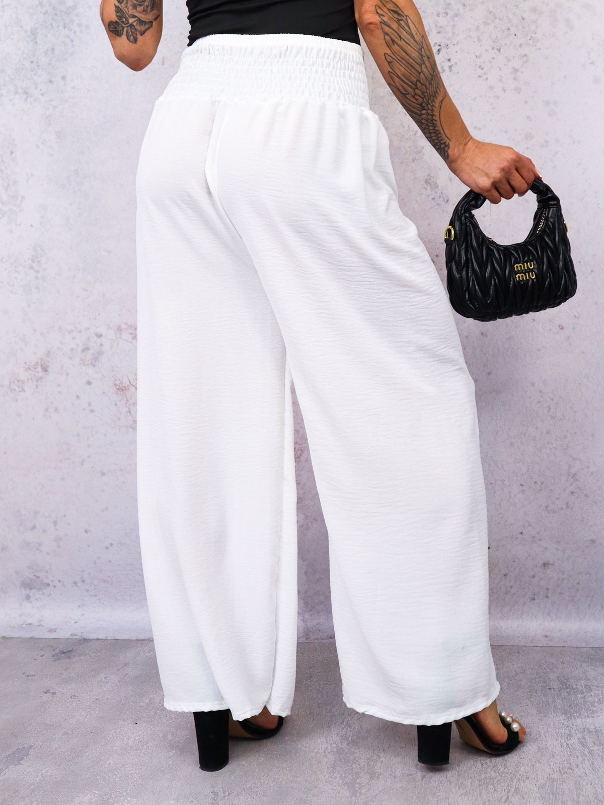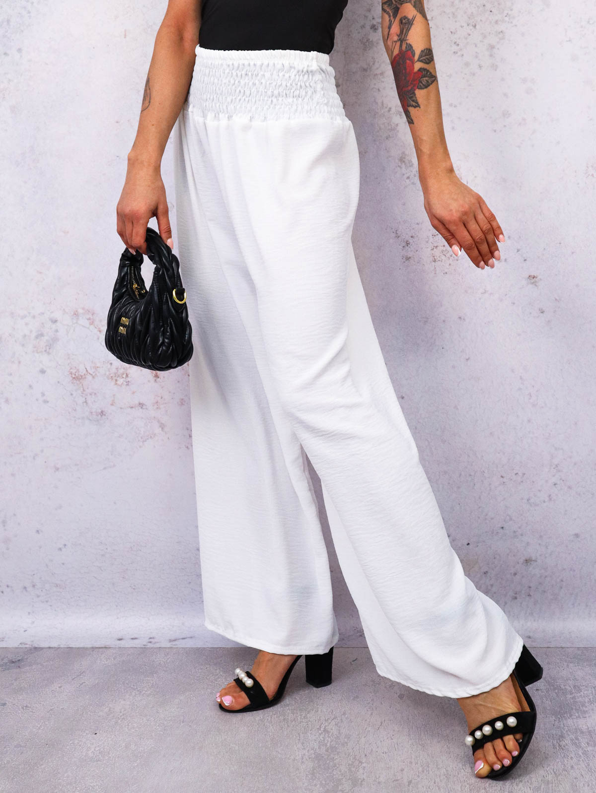 SPODNIE MATERIAŁOWE Z SZEROKIMI NOGAWKAMI I GUMĄ W PASIE- BIAŁE