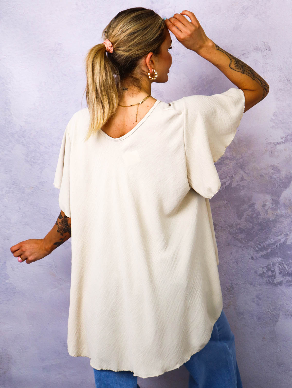 BLUZKA Z KWIATEM I OZDOBNYMI CYRKONIAMI- BEŻOWA