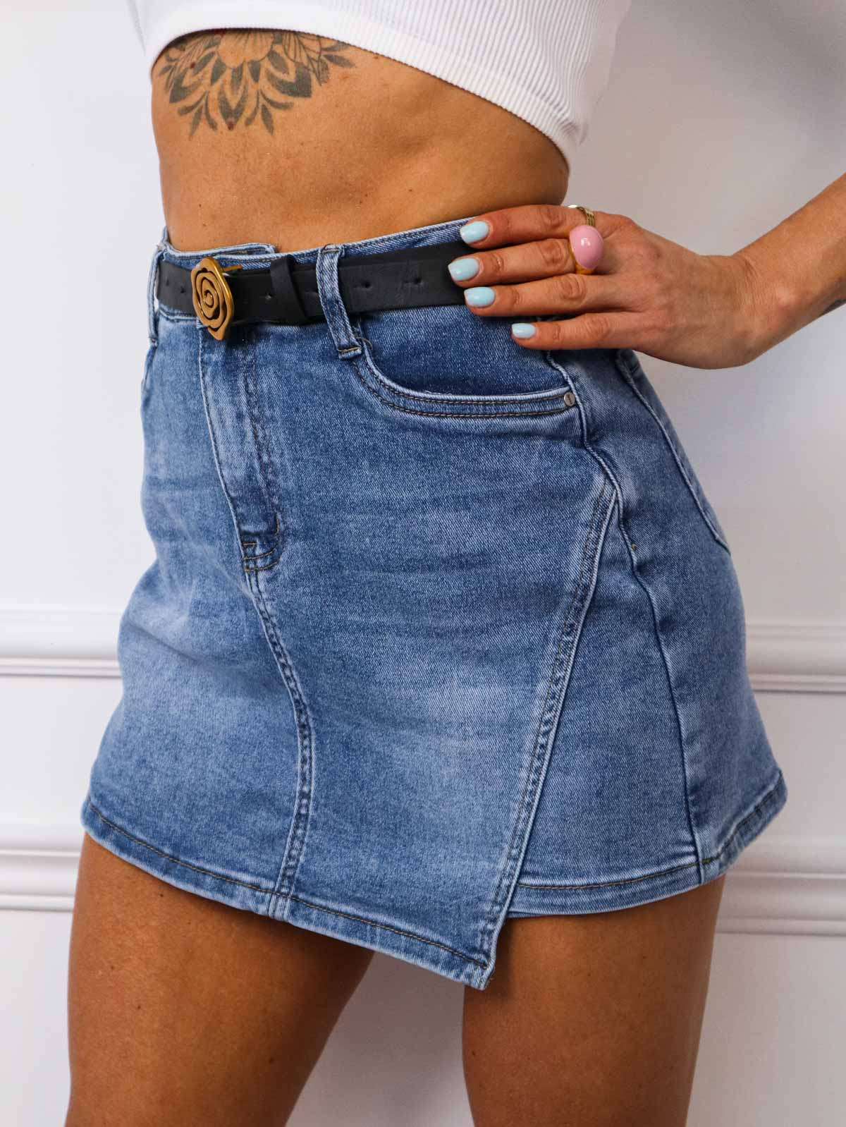 JEANSOWE SPÓDNICO-SPODENKI Z OZDOBNYM SZWEM NA BOKU+ PASEK
