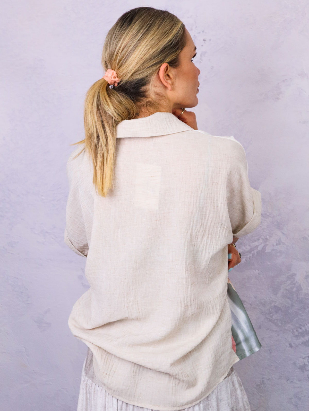 KOSZULA OVERSIZE Z KWIECISTYM NADRUKIEM- BEŻOWA