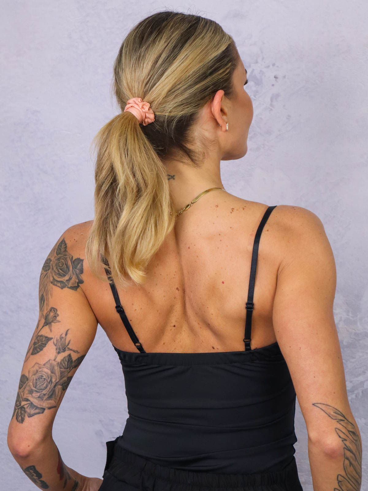 USZTYWNIANY TOP NA RAMIĄCZKACH- CZARNY