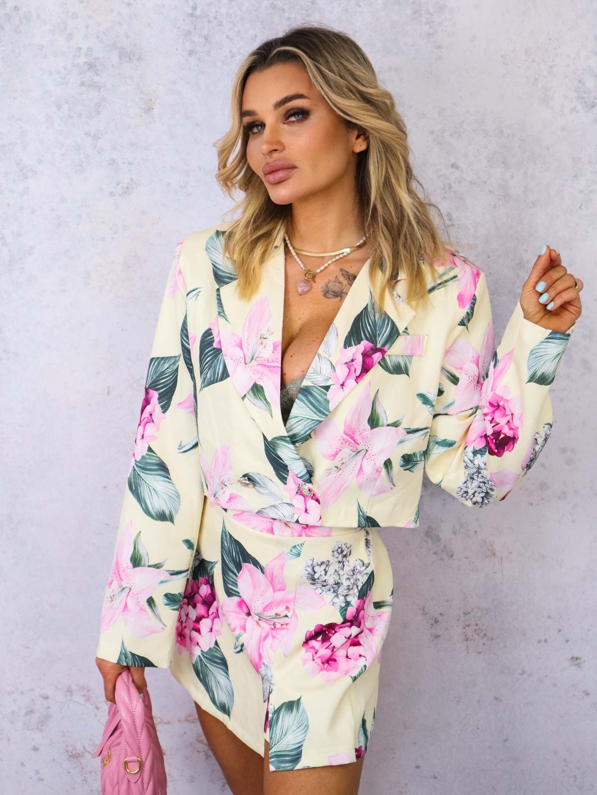 KOMPLET W KWIATY MARYNARKA+ SPÓDNICO-SPODENKI- ŻÓŁTY
