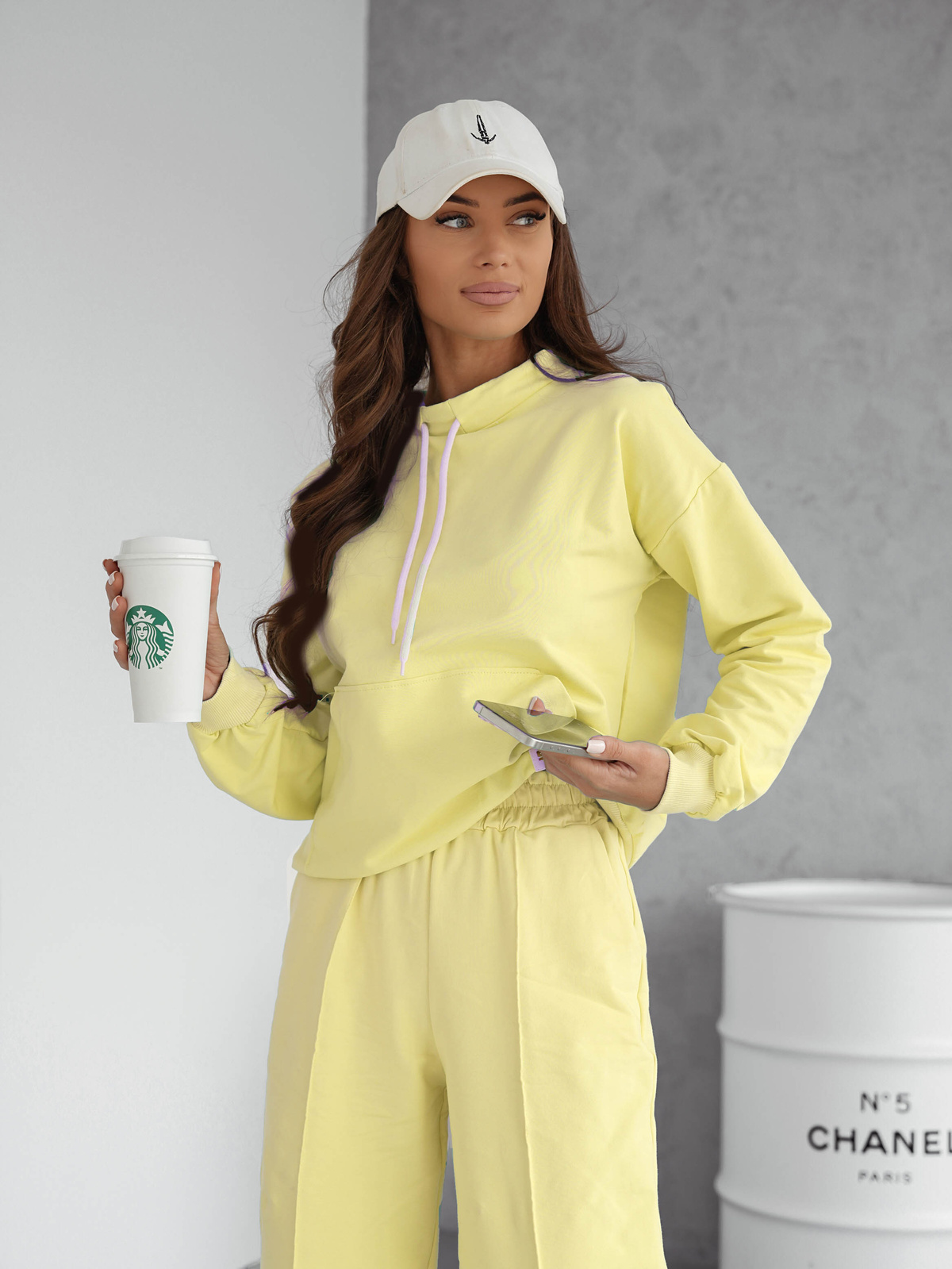 KOMPLET BAWEŁNIANY BLUZA Z SZNURKAMI+SPODNIE- ŻÓŁTY