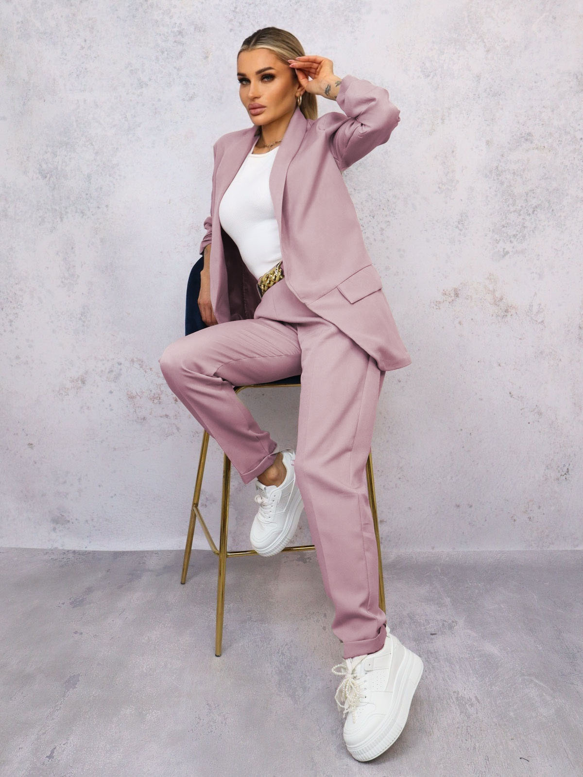 KOMPLET MARYNARKA+ SPODNIE- BRUDNY RÓŻ