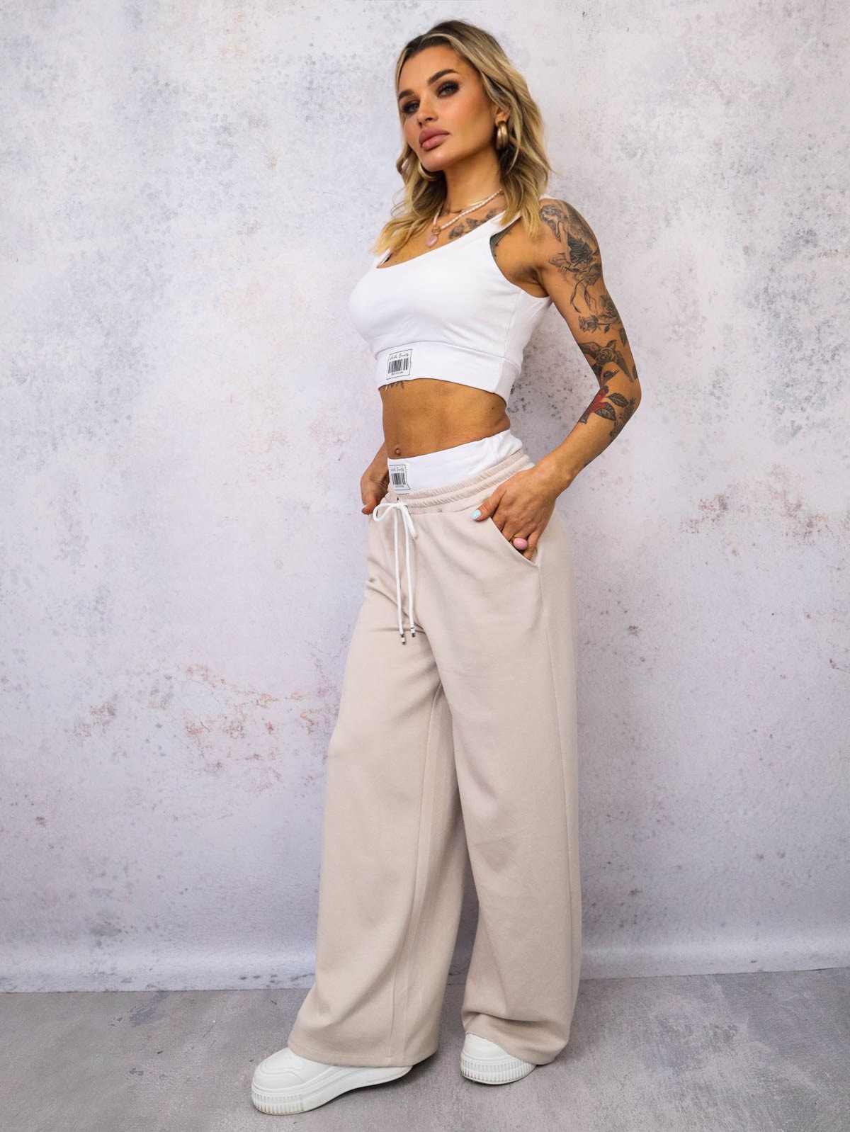 KOMPLET DRESOWY TOP Z NASZYWKĄ+ SPODNIE Z KONTRASTOWYM PASEM- BEŻOWY