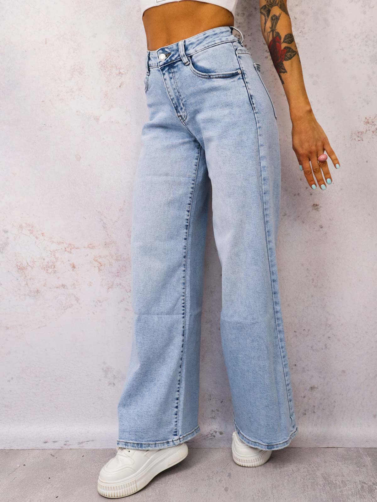 Spodnie jeansowe z szerokimi nogawkami i wysokim stanem. Elastyczny materiał.