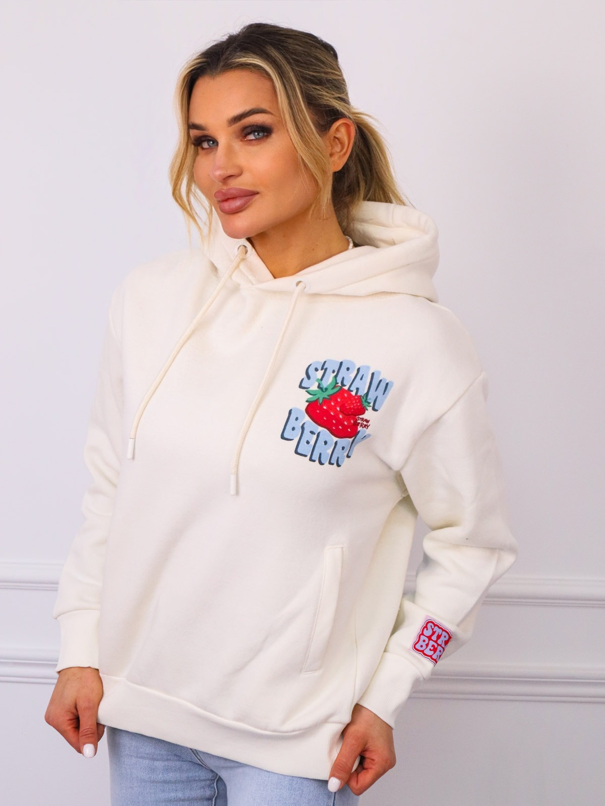 BLUZA Z KAPTUREM Z APLIKACJĄ Z PRZODU I NA PLECACH- BIAŁA