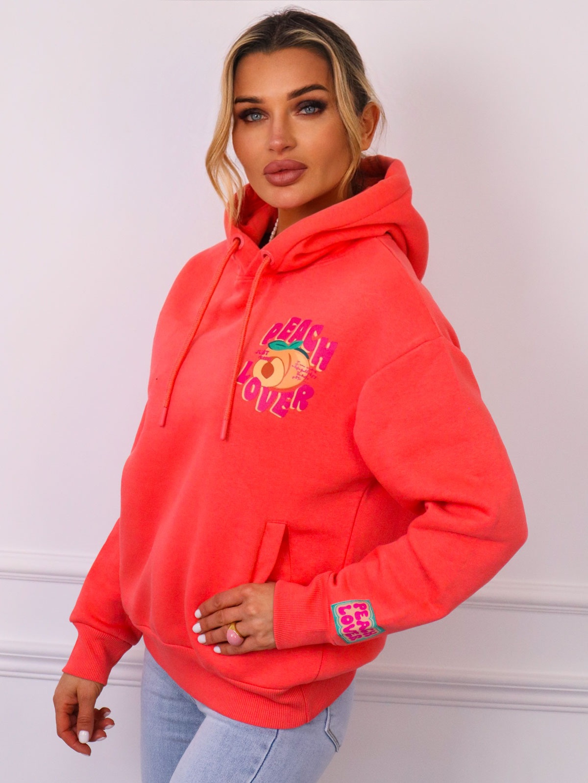 BLUZA Z KAPTUREM Z APLIKACJĄ Z PRZODU I NA PLECACH- POMARAŃCZOWA