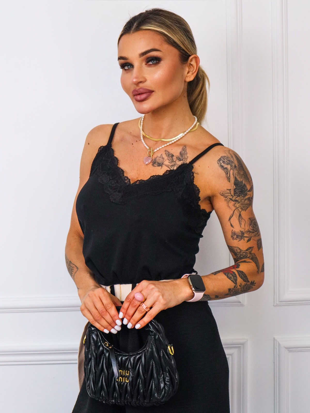 TOP NA RAMIĄCZKACH Z OZDOBNĄ KORONKĄ- CZARNY