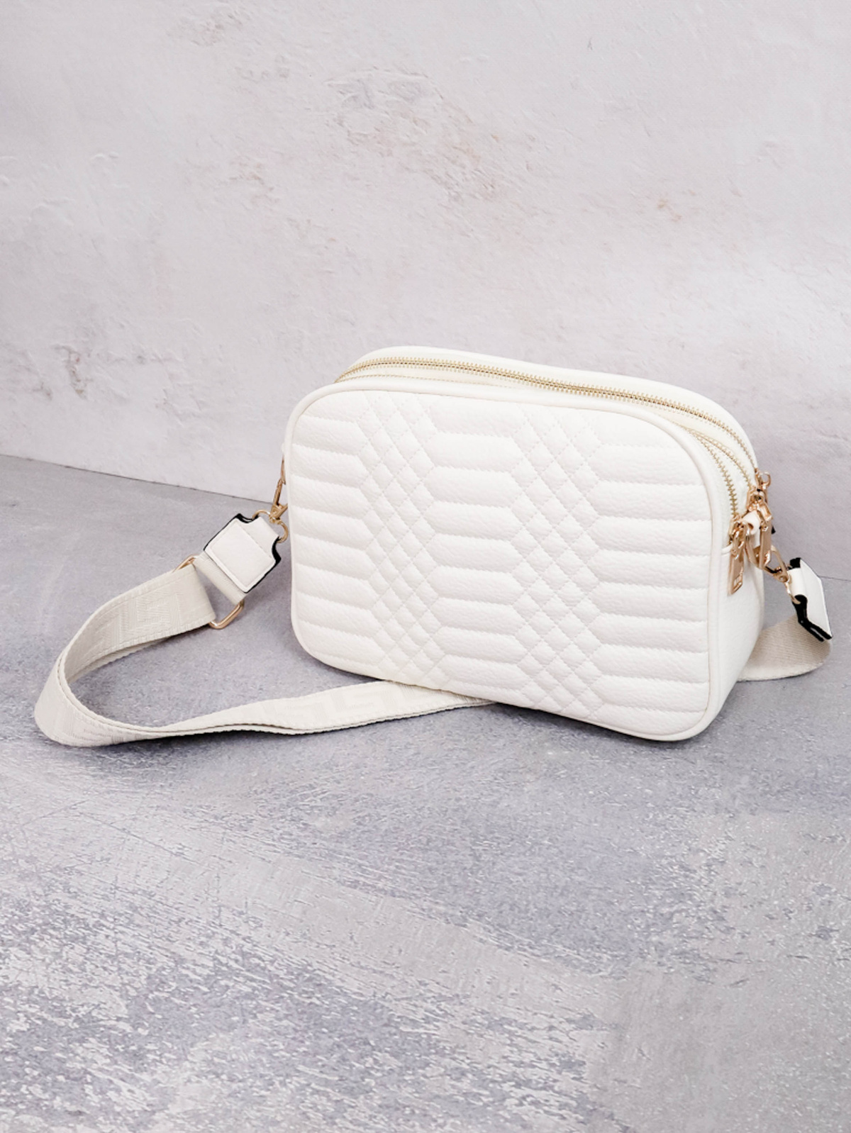 Torebka, kuferek z pikowanej ekoskóry. Posiada materiałowy, regulowany pasek. 3 komory, zapinane na zamek