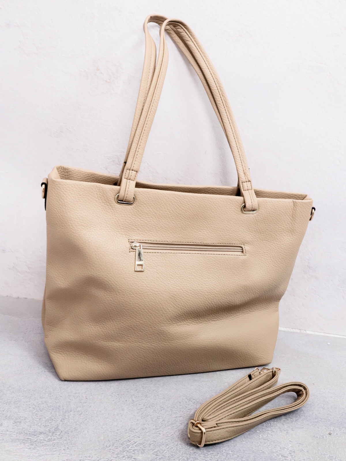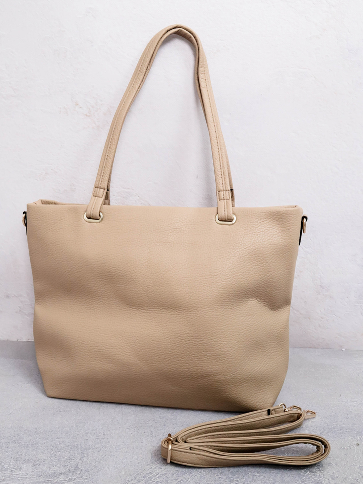 Torba shopperka z ekoskóry. Duża komora zapinana na zamek.