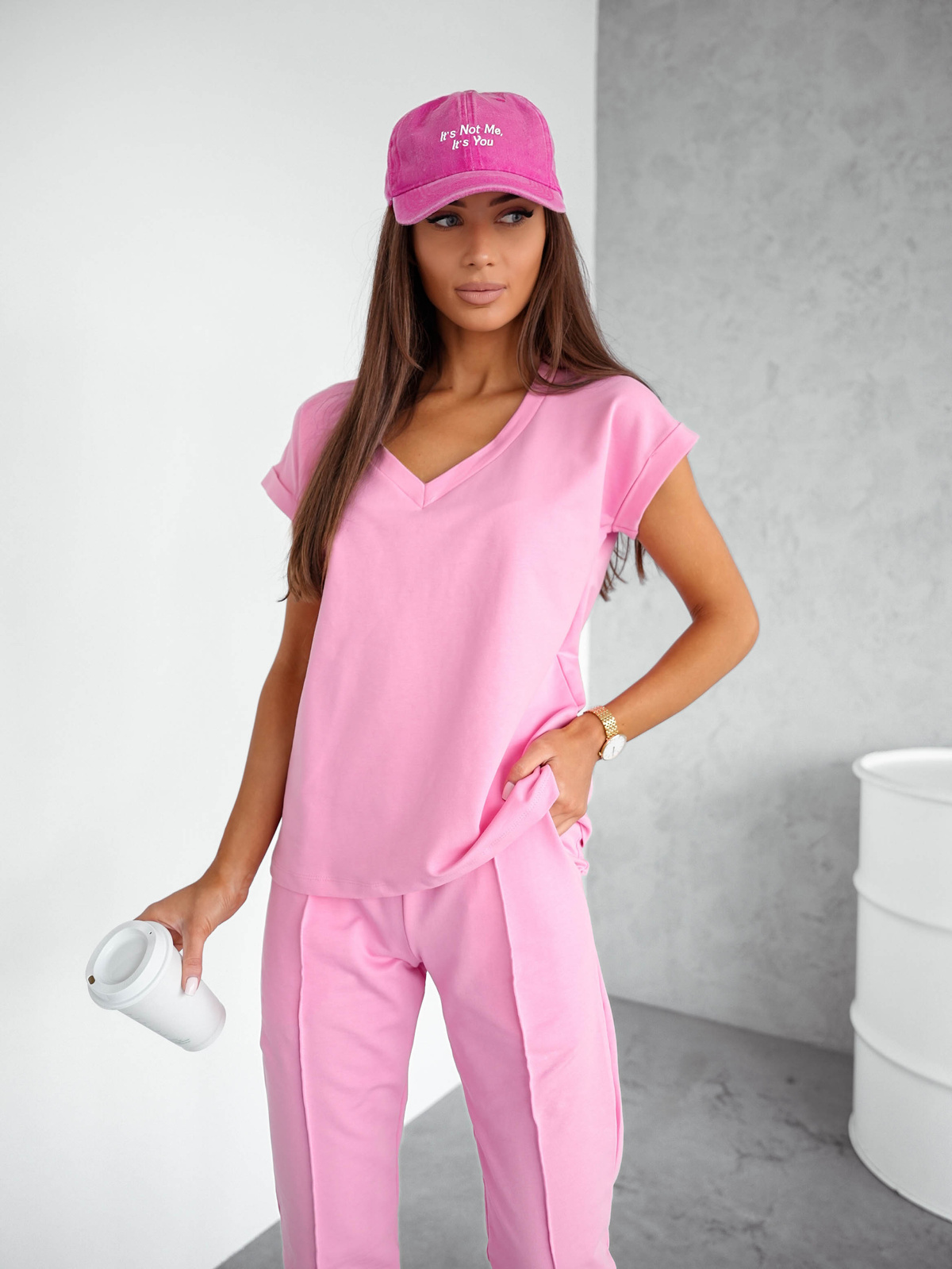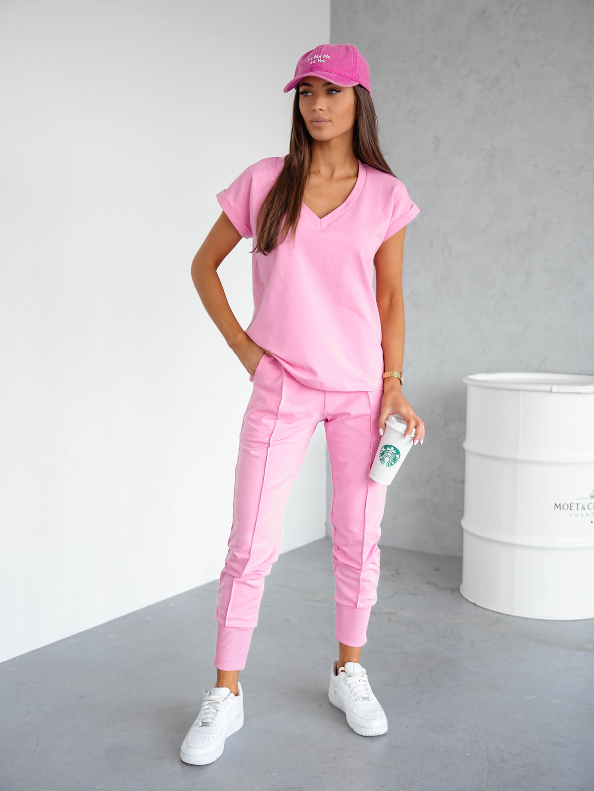 KOMPLET DRESOWY T-SHIRT+ SPODNIE Z PRZESZYCIEM- JASNY RÓŻ