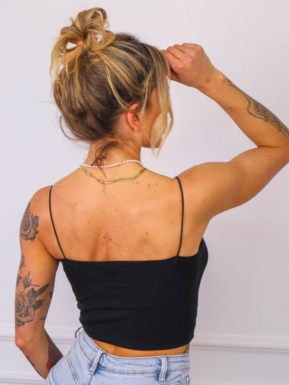 TOP PRĄŻKOWANY NA RAMIĄCZKACH- CZARNY