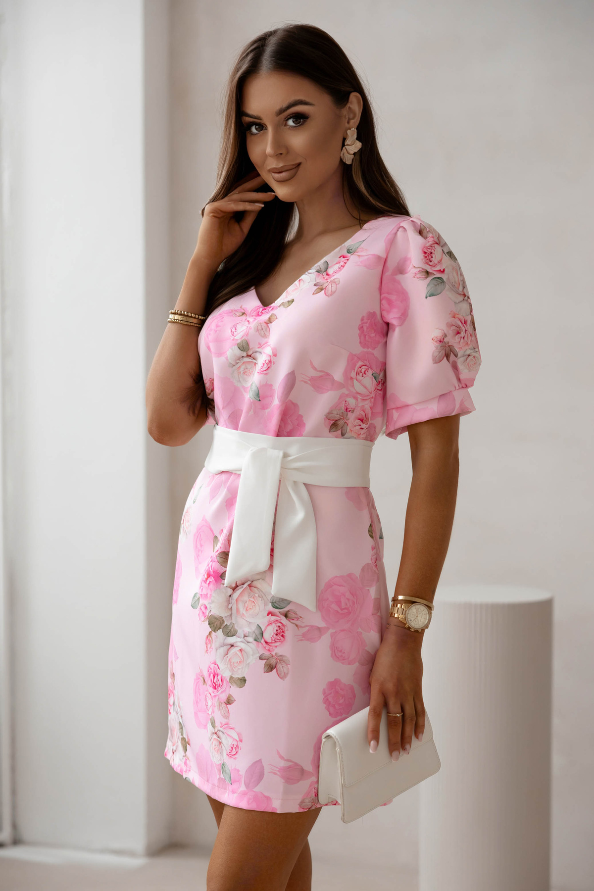 SUKIENKA MINI W KWIATY Z WIĄZANIEM- PUDROWY RÓŻ