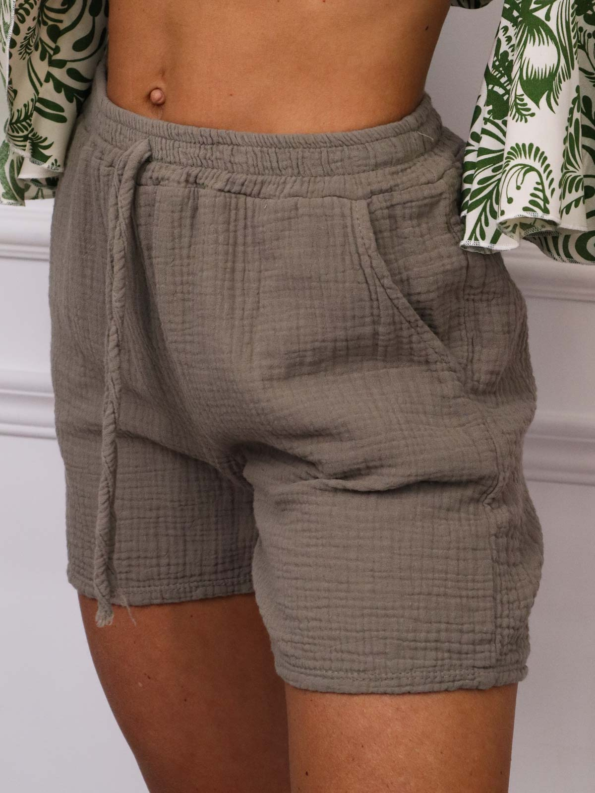 SZORTY MUŚLINOWE Z WIĄZANIEM W PASIE- FANGO