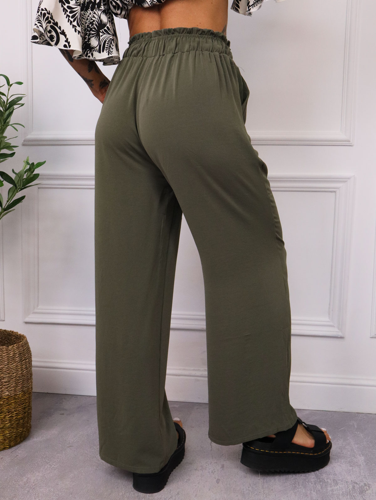 SPODNIE MATERIAŁOWE Z GUMĄ I WIĄZANIEM W PASIE- ZIELONE