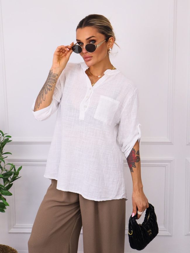 BLUZKA KOSZULOWA Z LNEM- BIAŁA