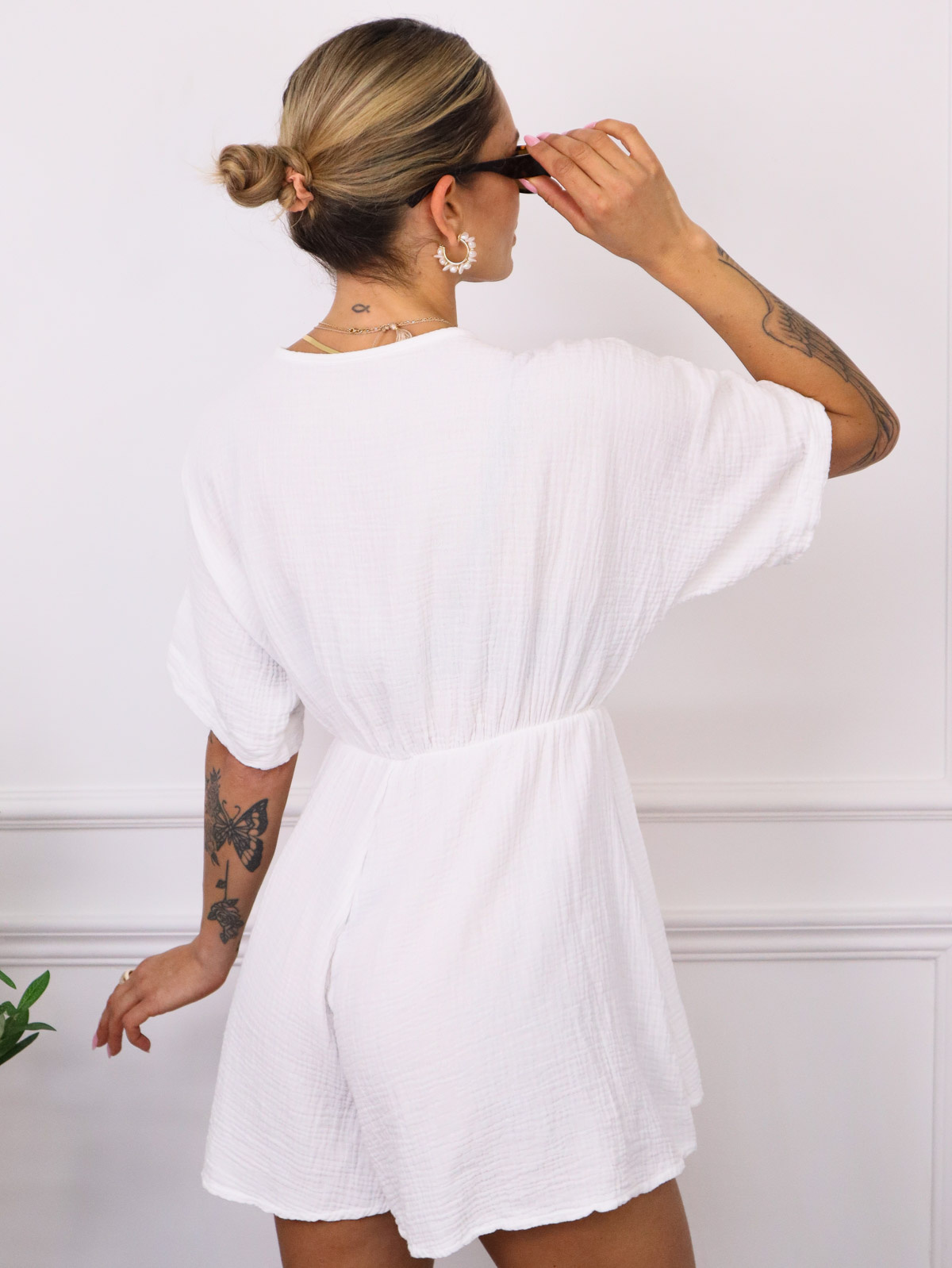 KOMBINEZON MUŚLINOWY Z KOPERTOWYM DEKOLTEM- BIAŁY