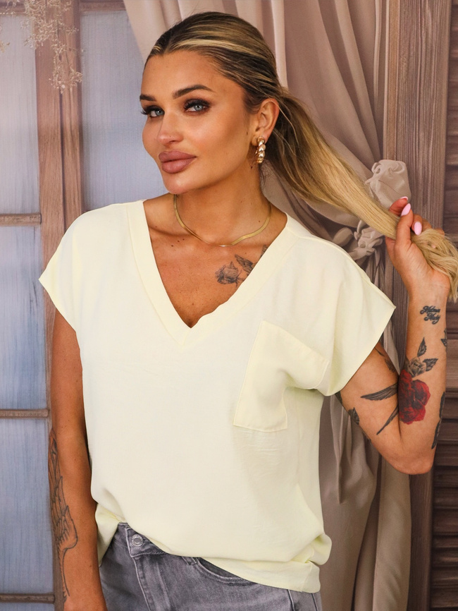 BLUZKA W SEREK Z KIESZONKĄ- ŻÓŁTA