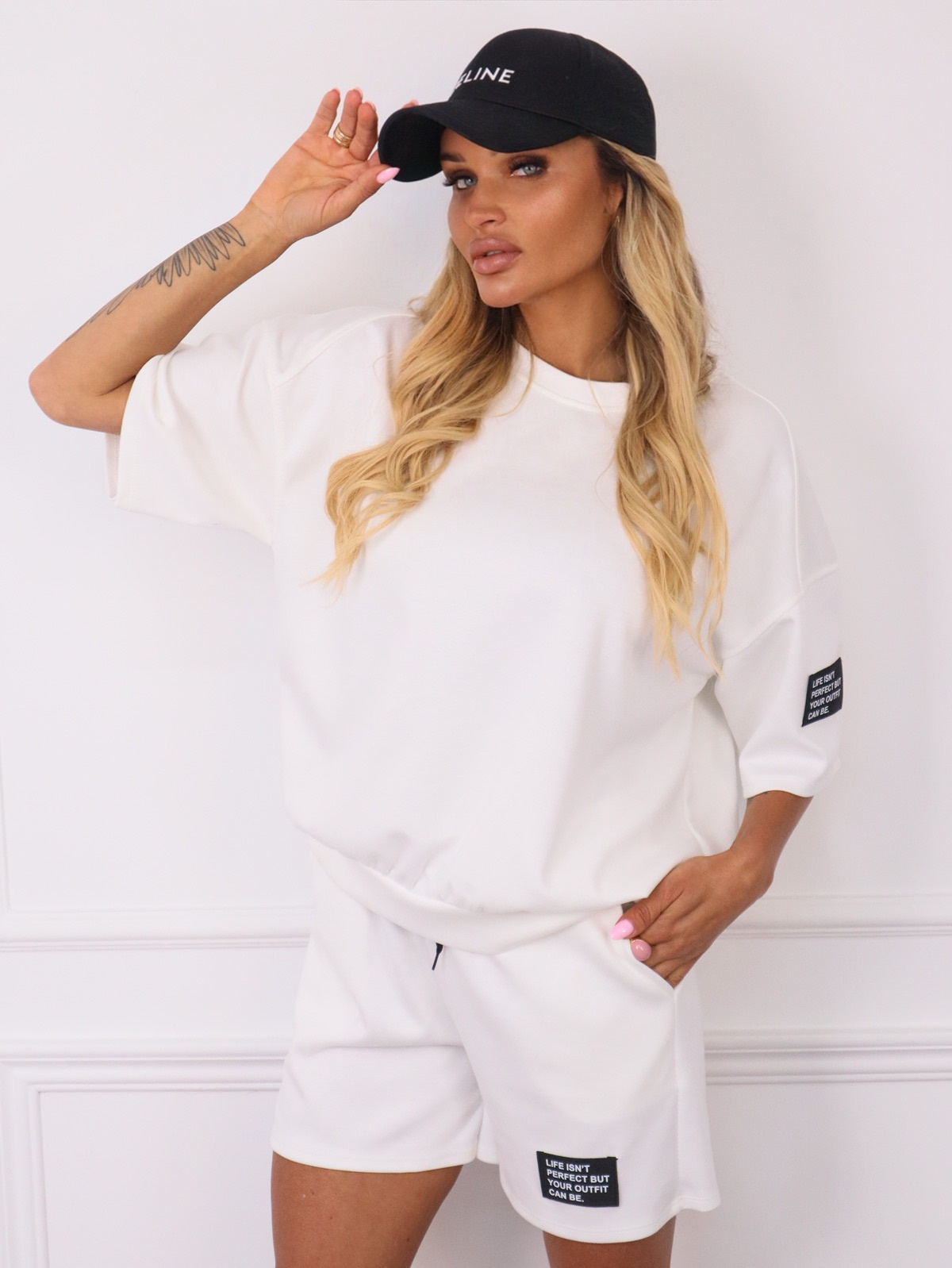 KOMPLET SZORTY+ T-SHIRT Z NASZYWKĄ- BIAŁY