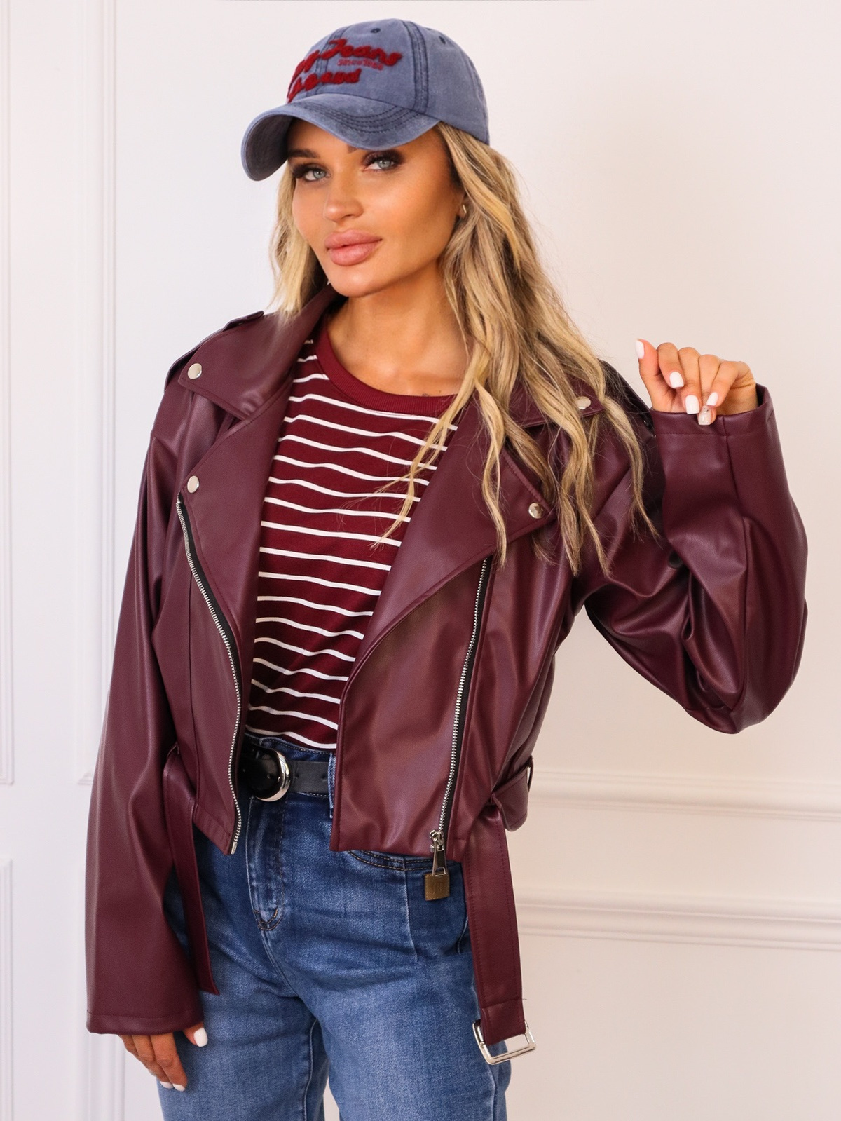 KURTKA RAMONESKA Z PASKIEM- BORDOWA