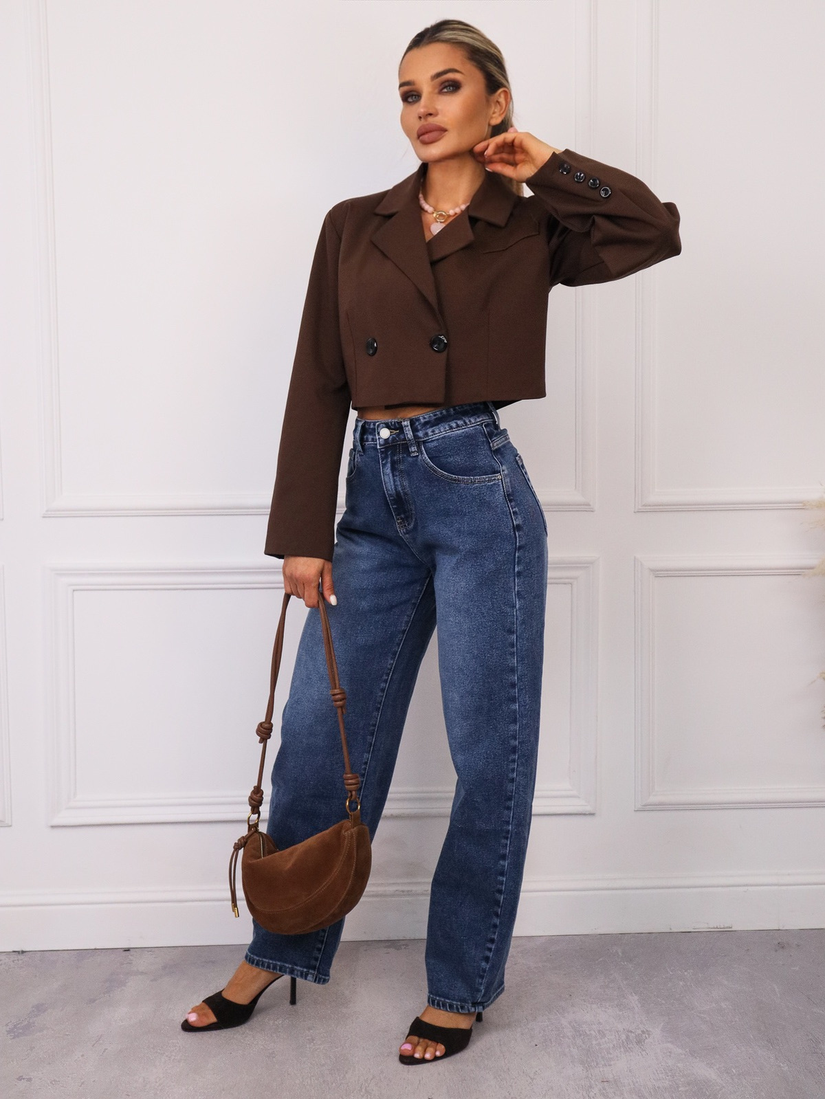 KRÓTKA MARYNARKA ZAPINANA NA GUZIKI- CIEMNY BRĄZ