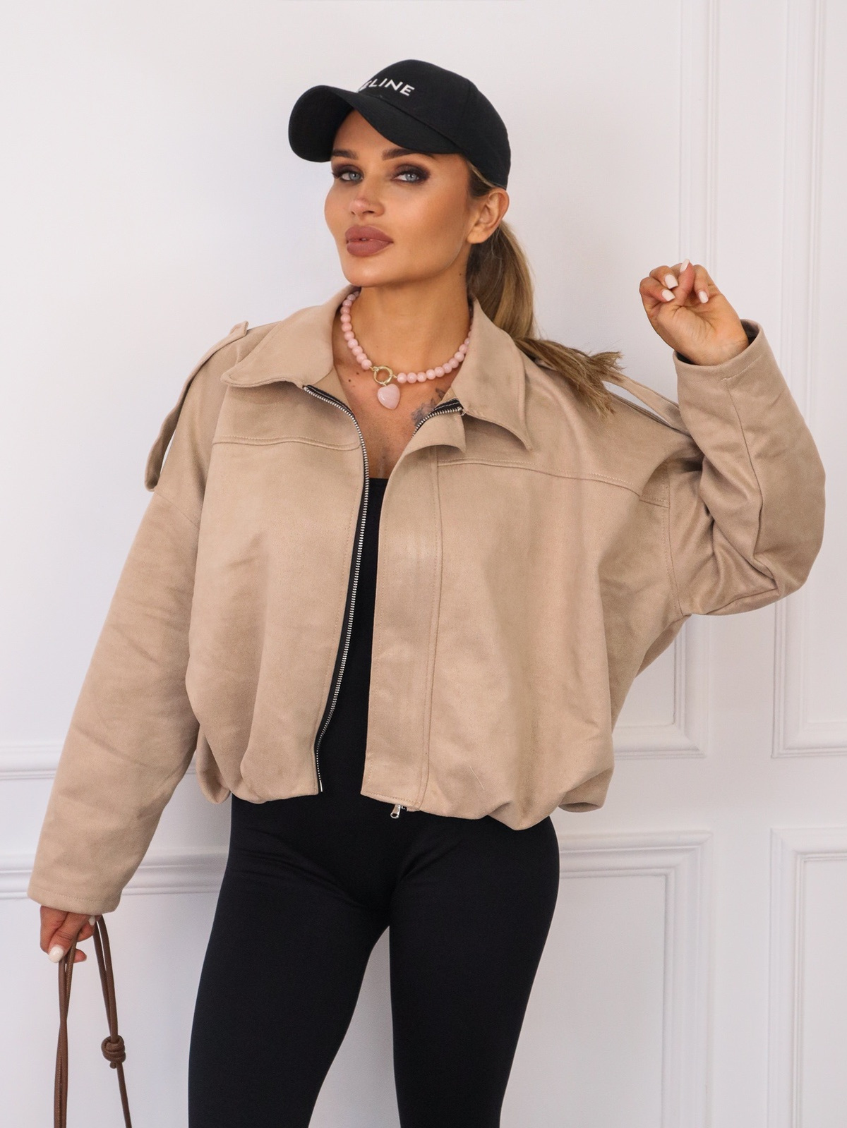 KURTKA OVERSIZE Z IMITACJI ZAMSZU ZAPINANA NA ZAMEK- BEŻOWA