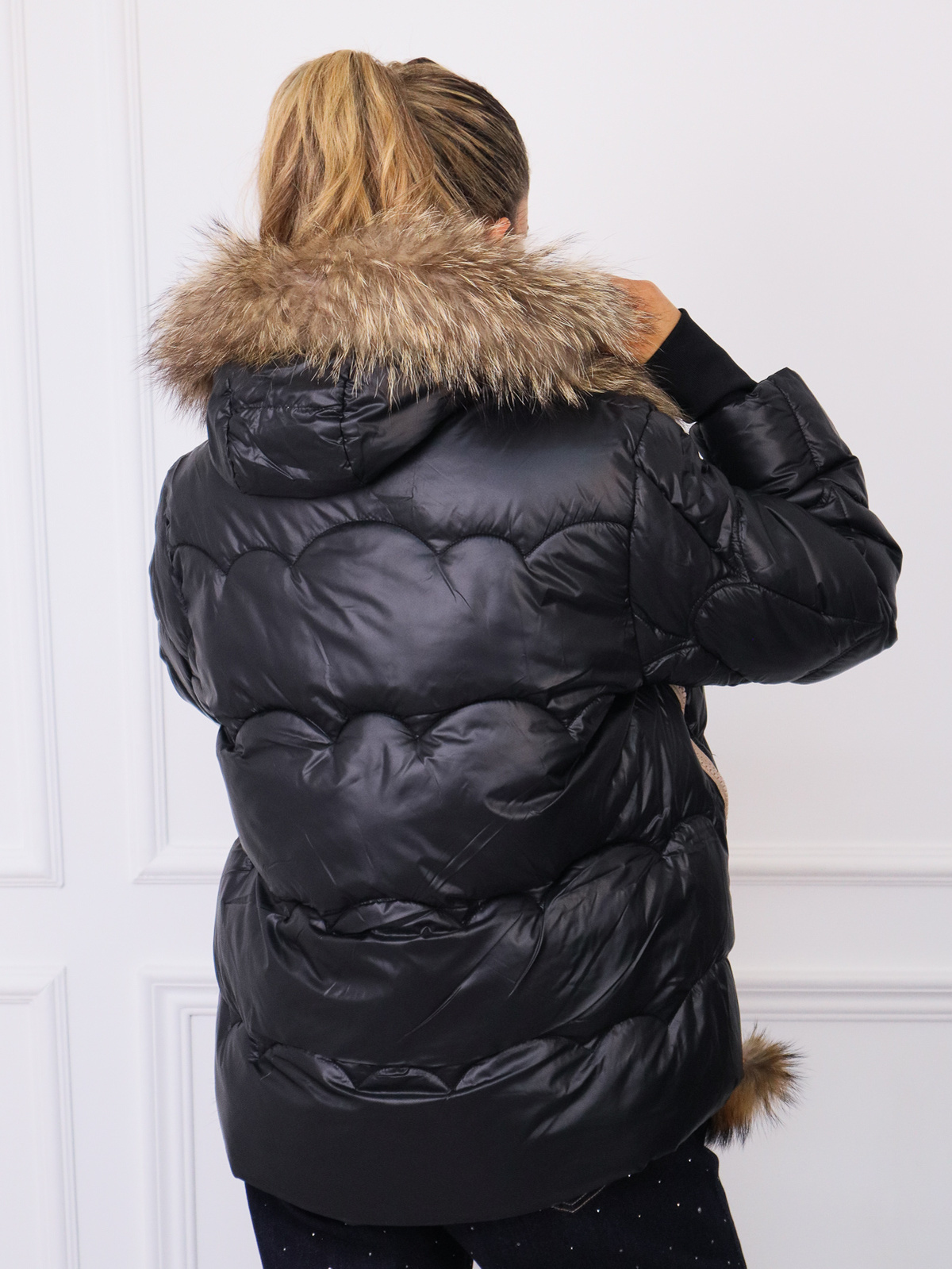 Stylowa i ciepła kurtka zimowa w kolorze beżowym z efektownym pikowaniem. Wyposażona w kaptur z miękkim, odpinanym futerkiem, ozdobne zamki po bokach, które podkreślają sylwetkę. Idealna na chłodne dni – łączy wygodę z modnym wyglądem.