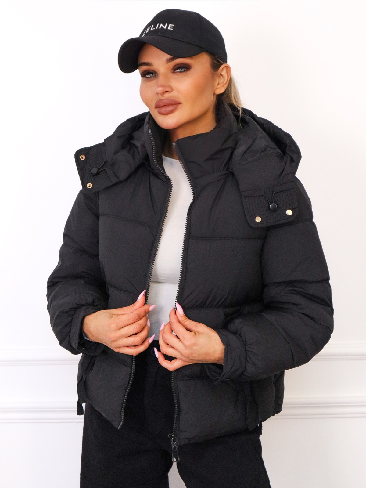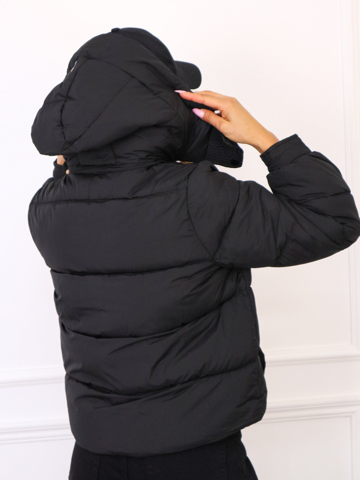 KURTKA PIKOWANA Z OZDOBNYMI NASZYWKAMI PRZY KIESZANIACH- CZARNA
