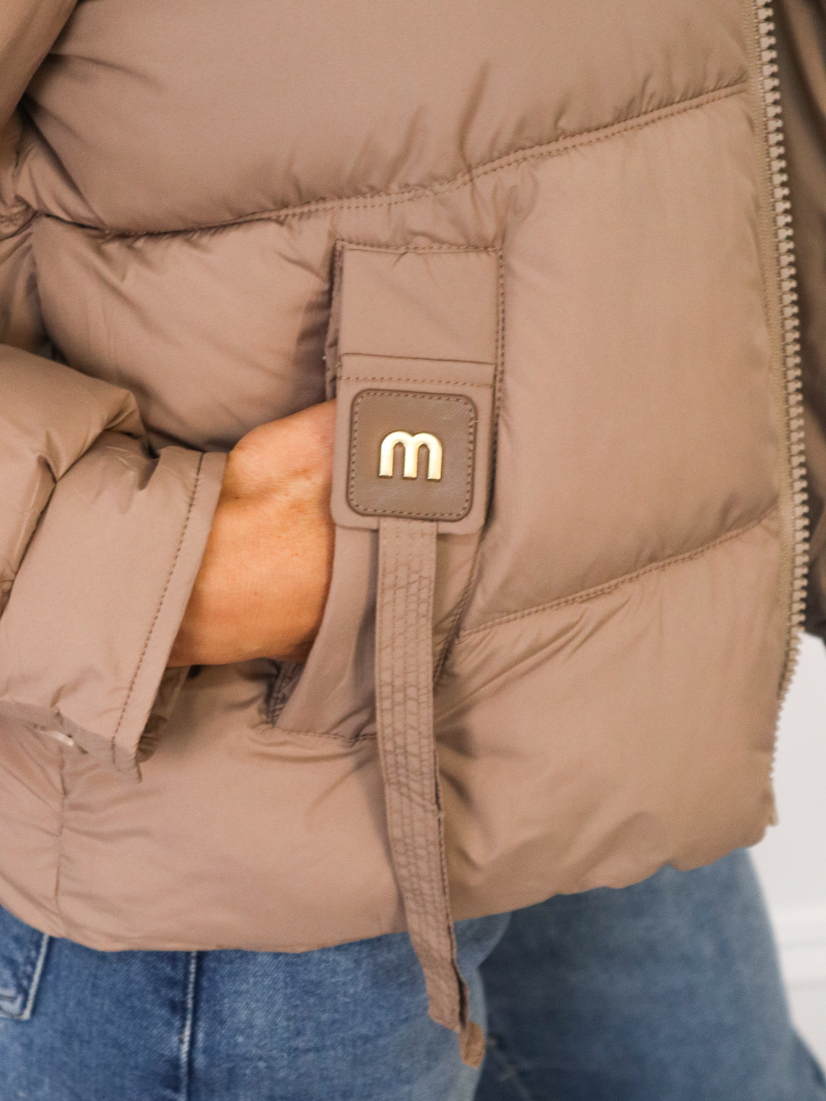 KURTKA PIKOWANA Z OZDOBNYMI NASZYWKAMI PRZY KIESZANIACH- CAPPUCCINO