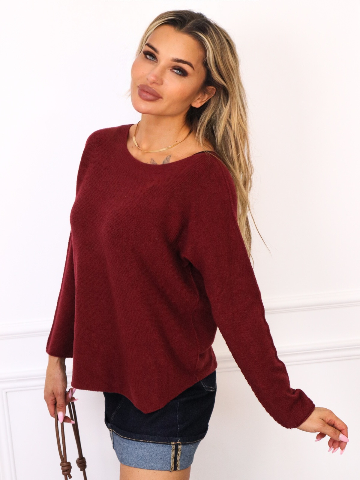 SWETER Z OKRĄGŁYM DEKOLTEM- BORDOWY
