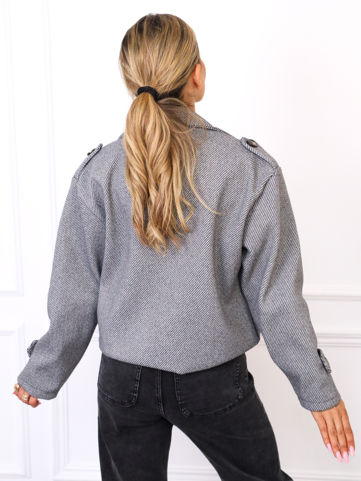 KRÓTKI PŁASZCZ ZAPINANY NA GUZIKI- SZARY